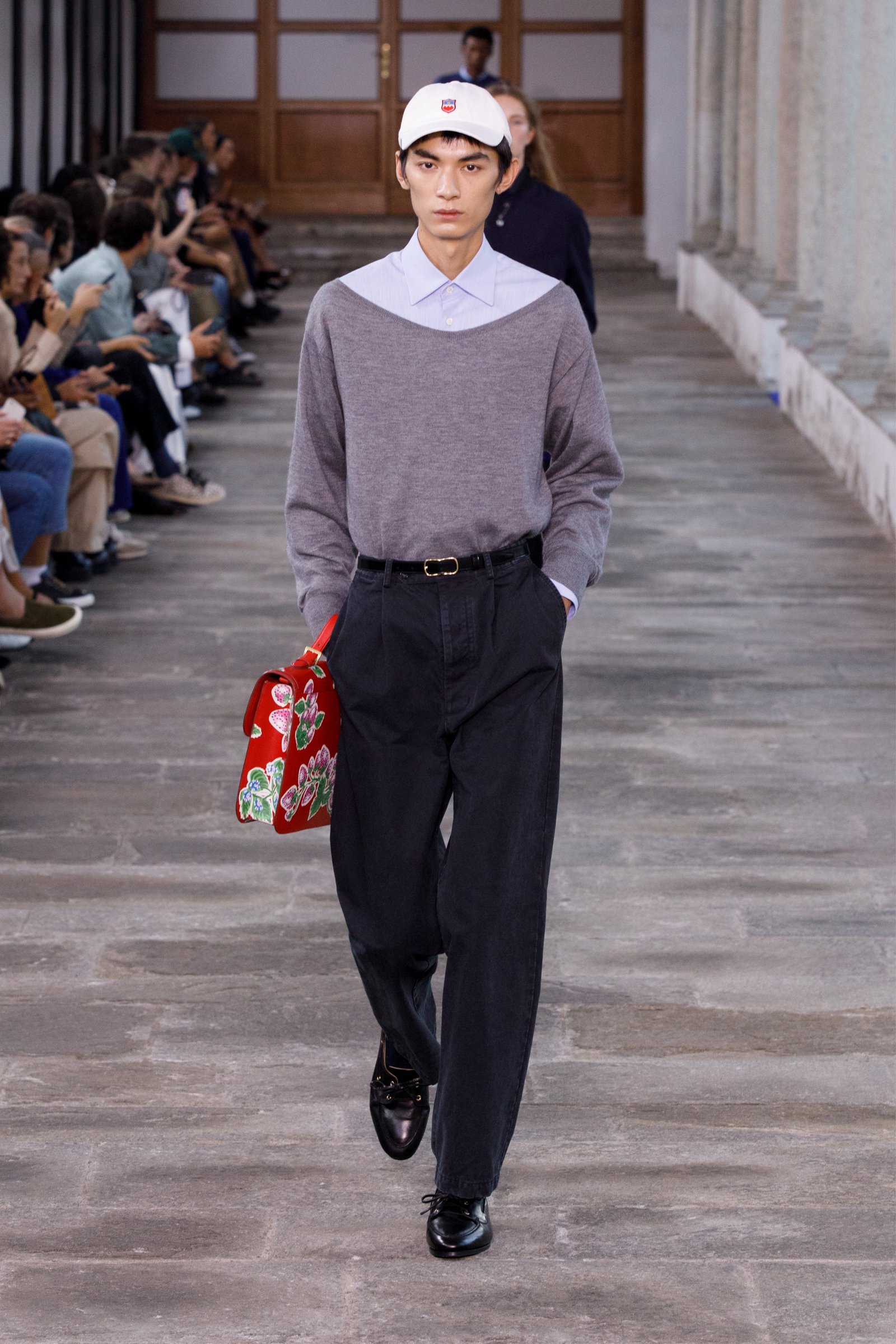 「バリー」のショー会場は、サン?シンプリチアーノ教会の庭園。新ディレクターのシモーネ?ベロッティは、ブランドのルーツであるスイスのアイデンティティにフォーカス。20世紀初頭に多くの文化人?知識人たちが集った南スイスのユートピア「モンテ?ウ?ェリタ(Monte Verità)」の精神に通じる、落ちついたエレガンスを提案した。モンテ?ウ?ェリタのコミュニティには、ヘルマン?ヘッセ(Hermann Hesse)やイサドラ?ダンカン(Isadora Duncan)などが参加し、様々な分野で文化的革命を起こした。コレクションにはスイスレッドやアルプスの植物のモチーフを取り入れる一方で、都会的なムードをミックス。人間の本質を映し出す二面性のコンセプトを反映した。