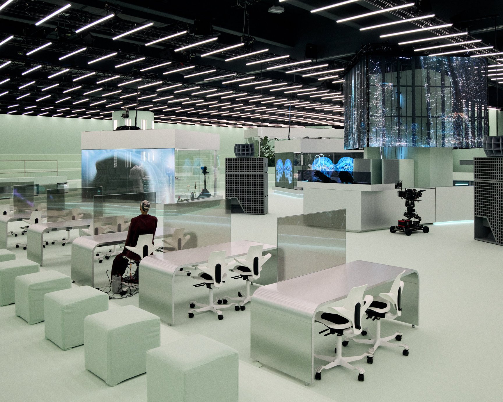 未来的な空間でオフィスウェアを再解釈した「ボス」