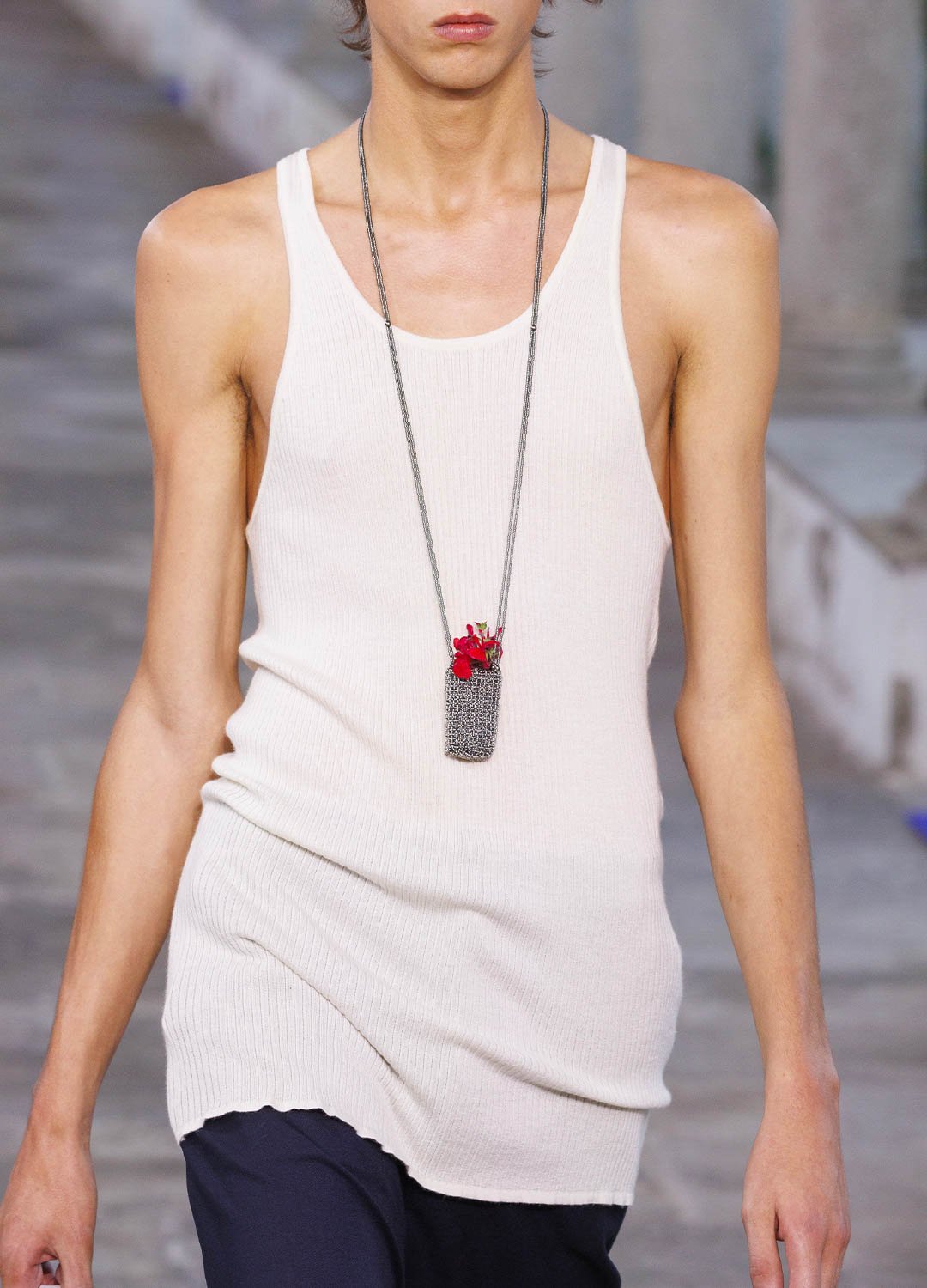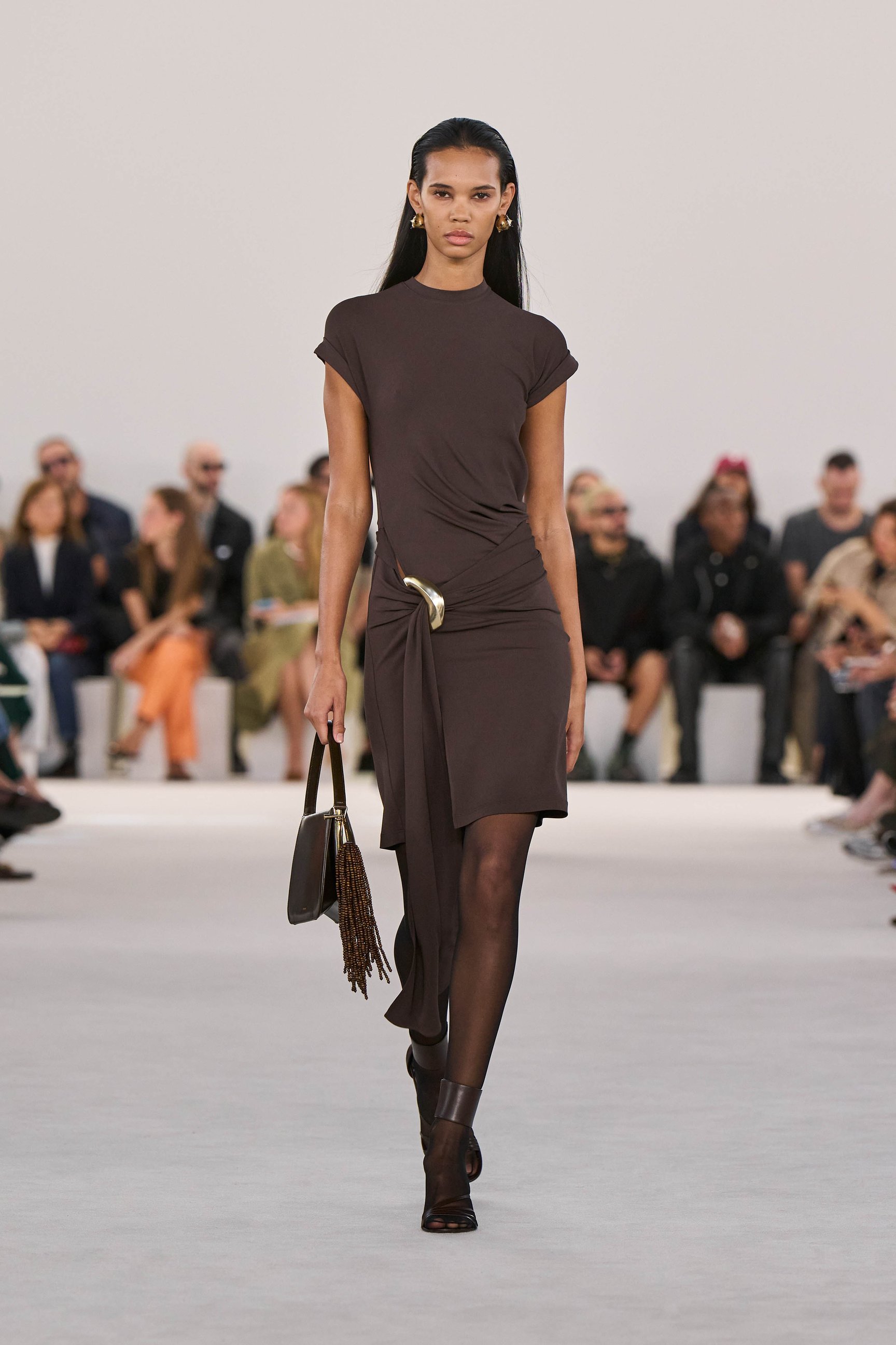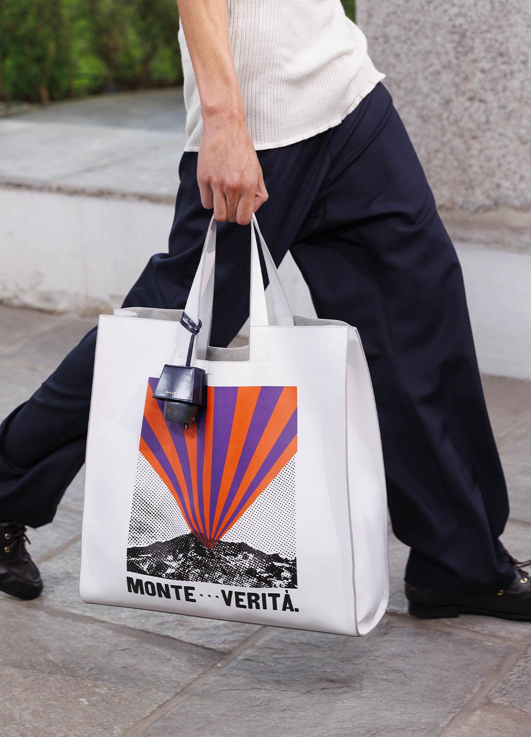 バッグは、前回のコレクションからグラフィカルなラインと幾何学的なフォルムを継承。「ハグ(HUG)」はキャンバスやレザーのほか、ポーチのスタイルが登場した。また、アーカイヴのライターをクロージャーとして取り入れたショルダーバッグ「フィアンマ(FIAMMA)」がデビュー。クラシカルなワンハンドルバッグには、今シーズンの自然体なムードを象徴するウッドビーズやフリンジがあしらわれた。