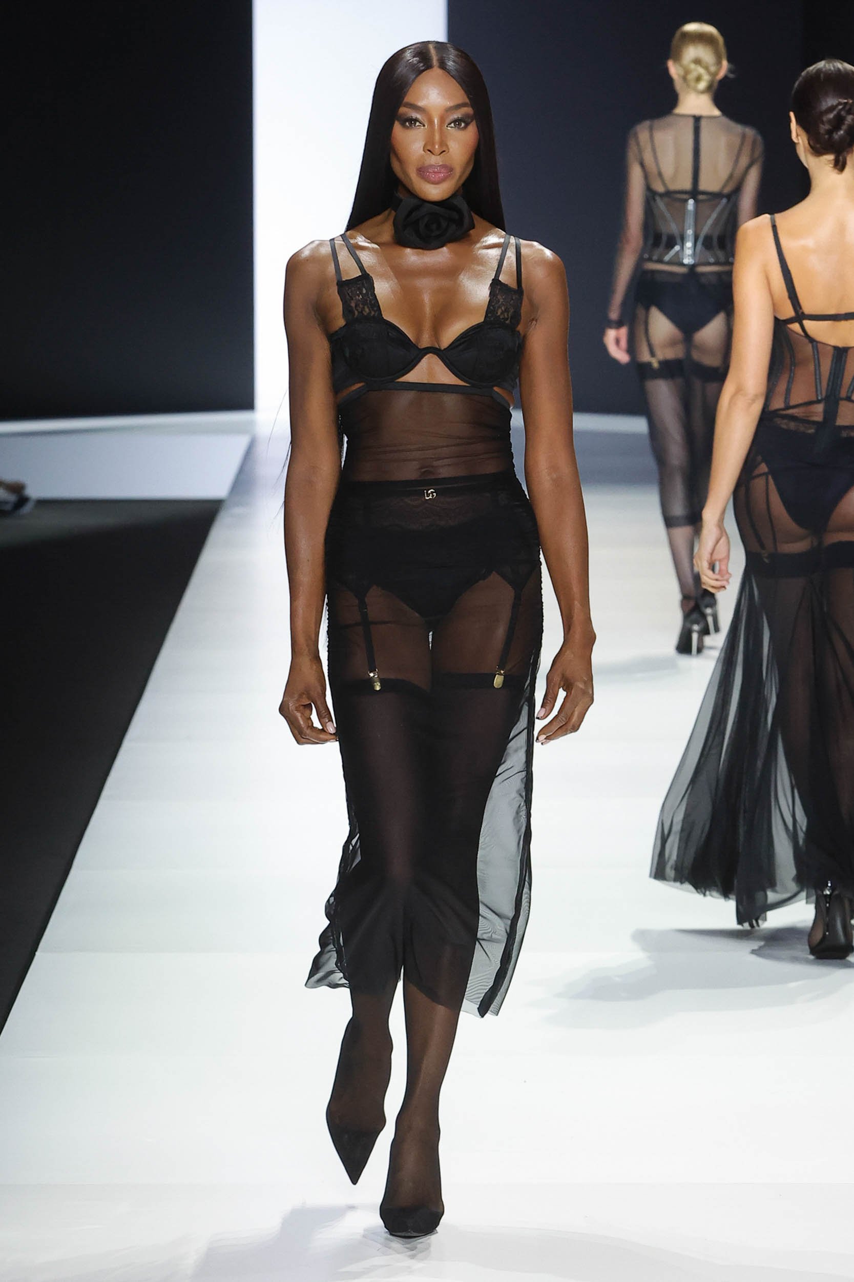 また、テーラリングにこだわり、襟の大きなトレンチコートやオーバーサイズのジャケットも登場。シェイプの効いたアイコニックなドルチェジャケットは、ショート、ミディアム、ロング丈の3つのバージョンで展開した。ラストルックには、スーパーモデルのナオミ?キャンベル(Naomi Campbell)が登場。その堂々としたウォーキングに会場からは喝采が送られた。