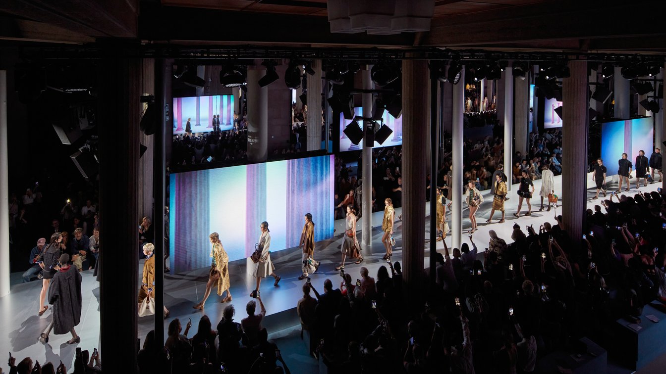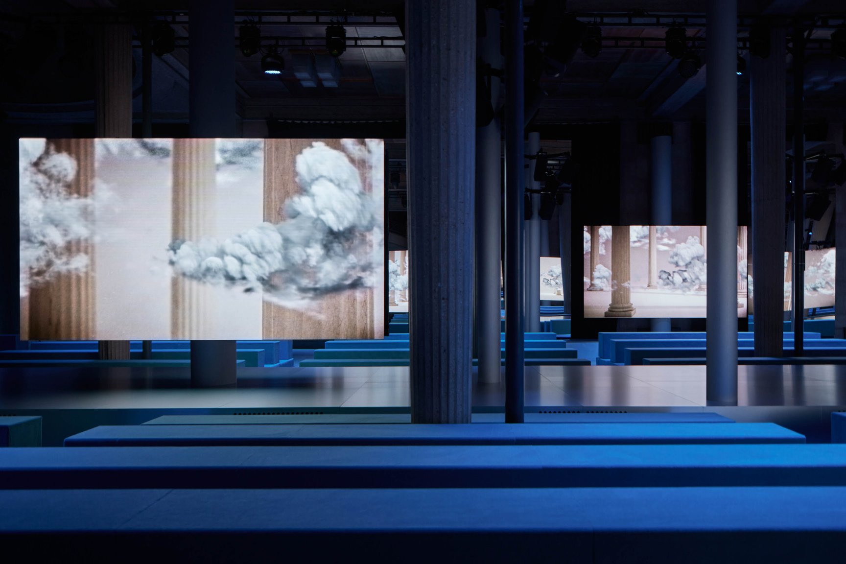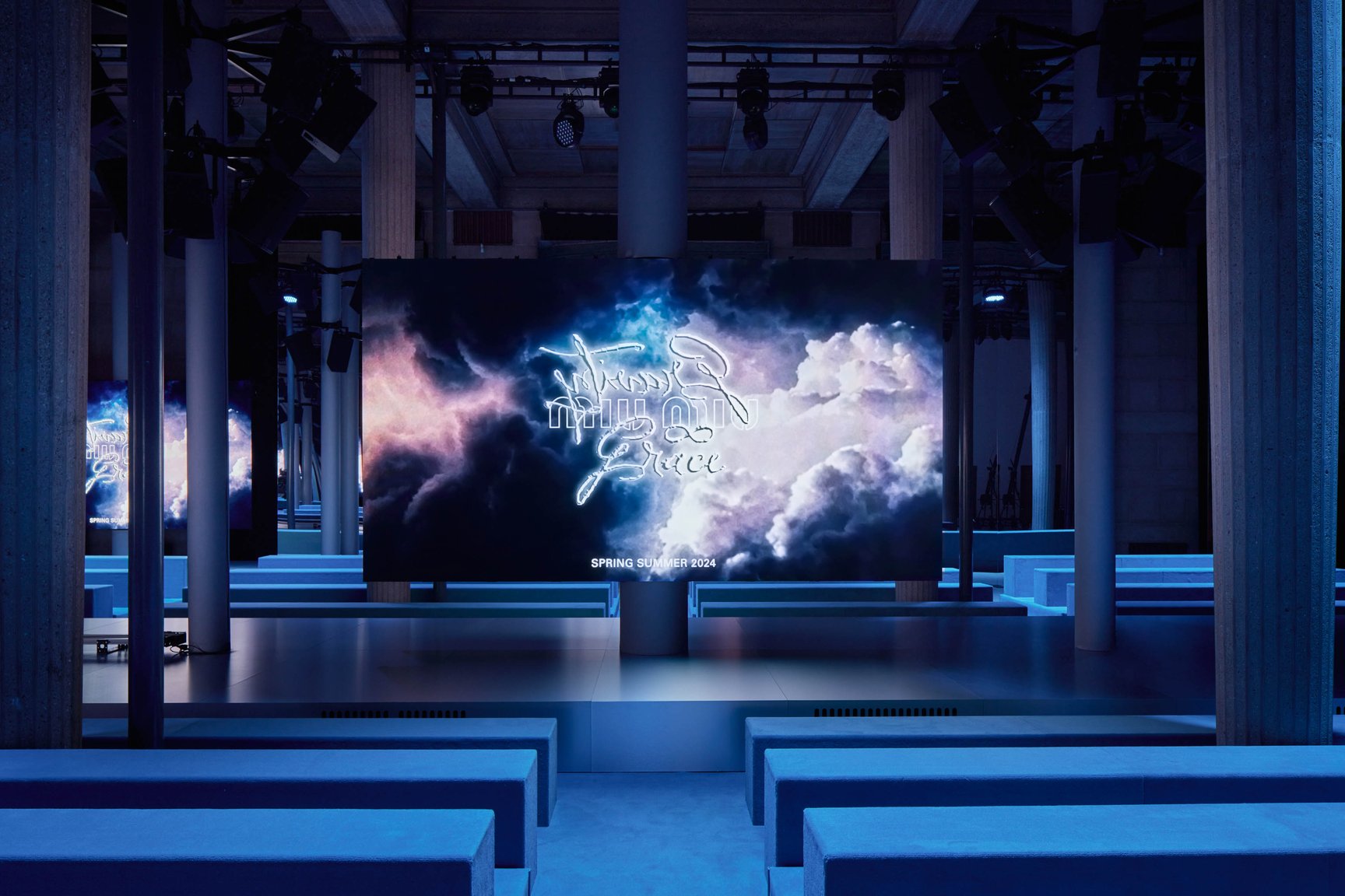 今年でブランド創設30年を迎えたミウッチャ?プラダ(Miuccia Prada)が手掛ける「ミュウミュウ(MIU MIU)」が、“A rationale of beauties(美しさの根拠)”をテーマに掲げた2024年春夏コレクションを発表した。昨シーズンに引き続き、会場となったのはパリのイエナ宮(Palais d’Iéna)。建築家レム?コールハース(Rem Koolhaas)率いるOMAが作り上げたテクニカルな遺跡風セットを舞台に、カタール系アメリカ人のアーティストであるソフィア?アル?マリア(Sophia Al-Maria)の映像作品「Gravity & Grace」がランウェイと並行するように設置された巨大スクリーンに投影される中、ショーはスタートした。