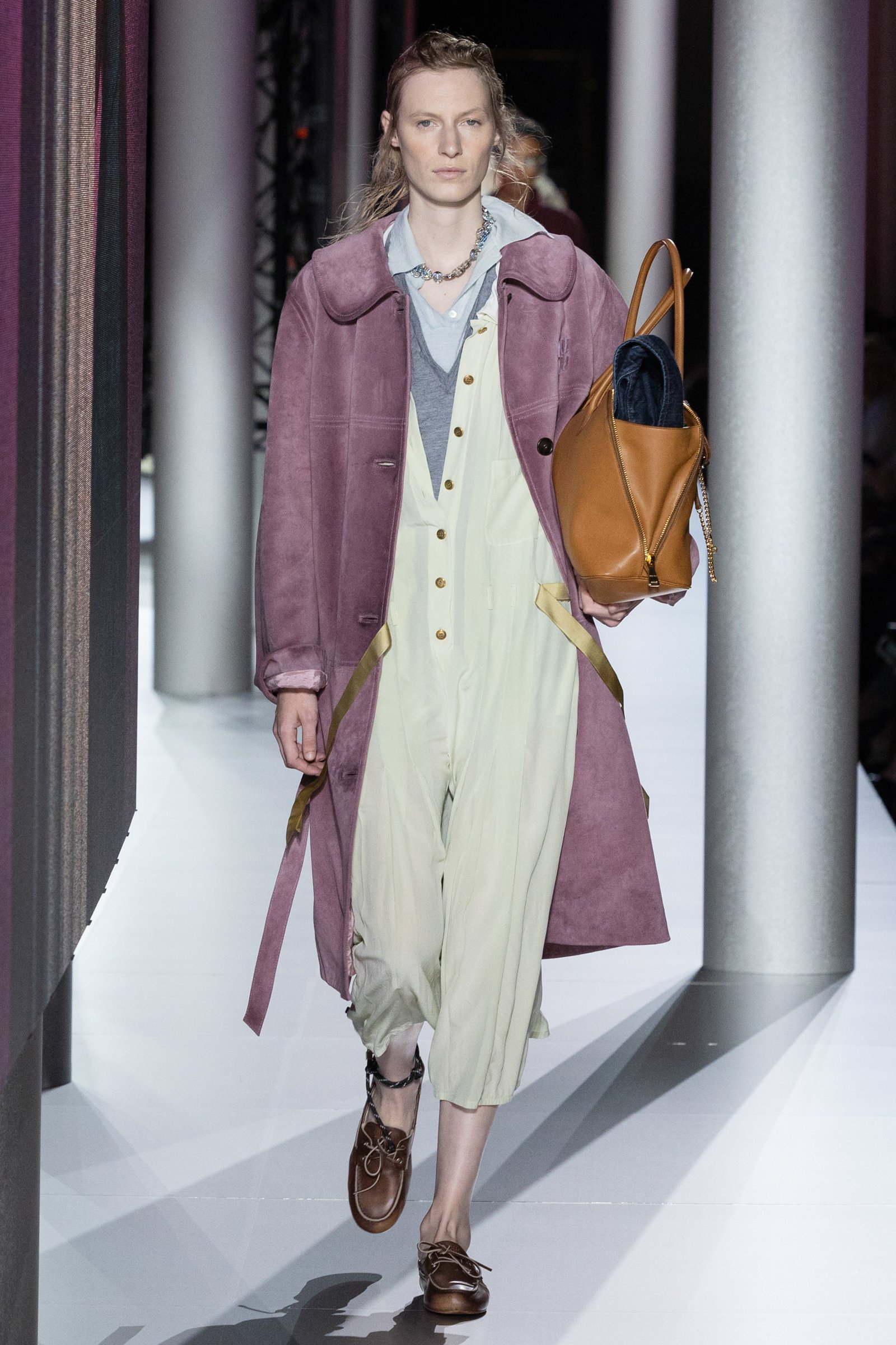 また、バッグからは時折スイムウェアやハイヒールがのぞいており、コロナ禍以降、顕著に求められるバカンスムード、そしてボディーメイクやスポーツに興ずる現代女性の姿をユーモラスに映し出す。物をたくさん詰め込んだビッグバッグは、今年他界したジェーン?バーキン(Jane Birkin)のスタイルを彷ふつとさせた。