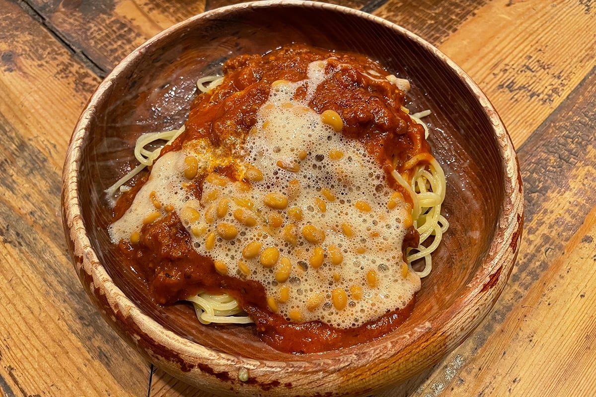 変わり種にして大看板!「ミートソースと納豆」パスタ