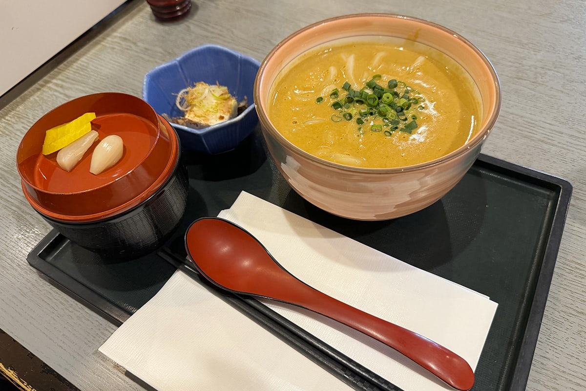 南青山3丁目、青山でカレーうどんといえば「手打 しまだ」。飲んだあとのシメにもランチでも行きたい、地元や周辺で働く人たちにも愛される一軒。定番の「カレースープうどん」は、クリーミーかつコクのあるスープと、コシをしっかりと感じられるうどんが濃厚に絡み合う逸品。なんとご飯付きでおかわりも無料!白米をカレースープに浸して食べるのも◎。
