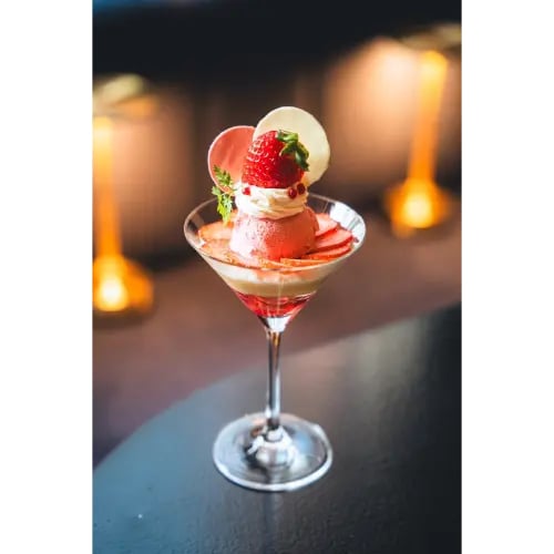 甘酸っぱい旬のいちごに手作りのアイス、ソース、ジュレを合わせた贅沢仕立て。
