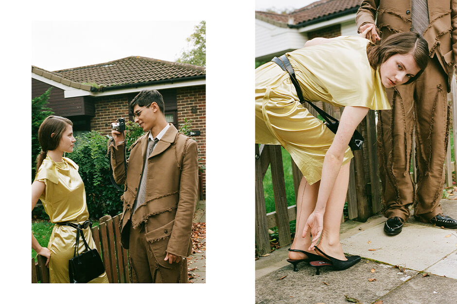 left - dress by GIL HURSTHAUSEN, shoes, belt and bag stylist’s ownright - jacket and trousers by STRONGTHE, shoes and tie stylist’s own