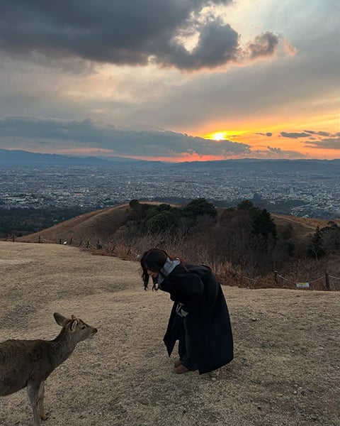 頂上で鹿と一緒に写真を撮ると、背景の絶景も写るのでおすすめ。
