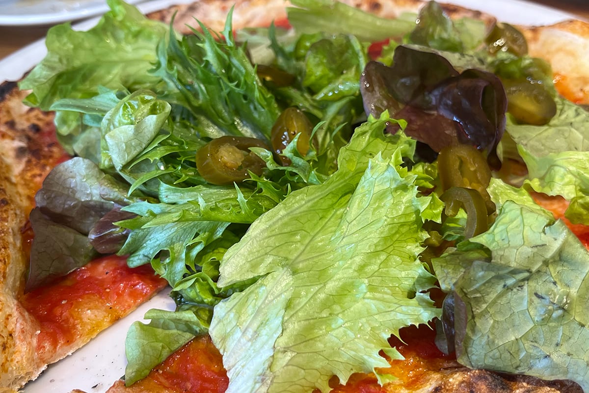 個人的に、毎回頼むのはマルゲリータにハラペーニョのサラダを豪快に乗せた「グリーンクラッソン」。フレッシュなシャキシャキ感とほっこりもちもちのピザが味わえる贅沢な一枚。ピリリとした爽やかな辛味のハラペーニョが最高なのだ。タコスとか好きな人はぜひ。