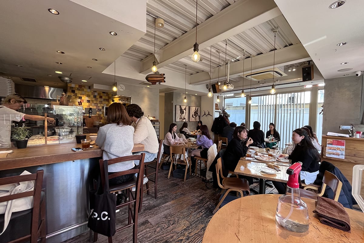ランチタイムは常に賑わっているが、みんなリラックスしながら食事を楽しんでいる。その雰囲気の良さもおいしさにつながっている気がした。仲間たちとピザをシェアして食べるランチは最高です。