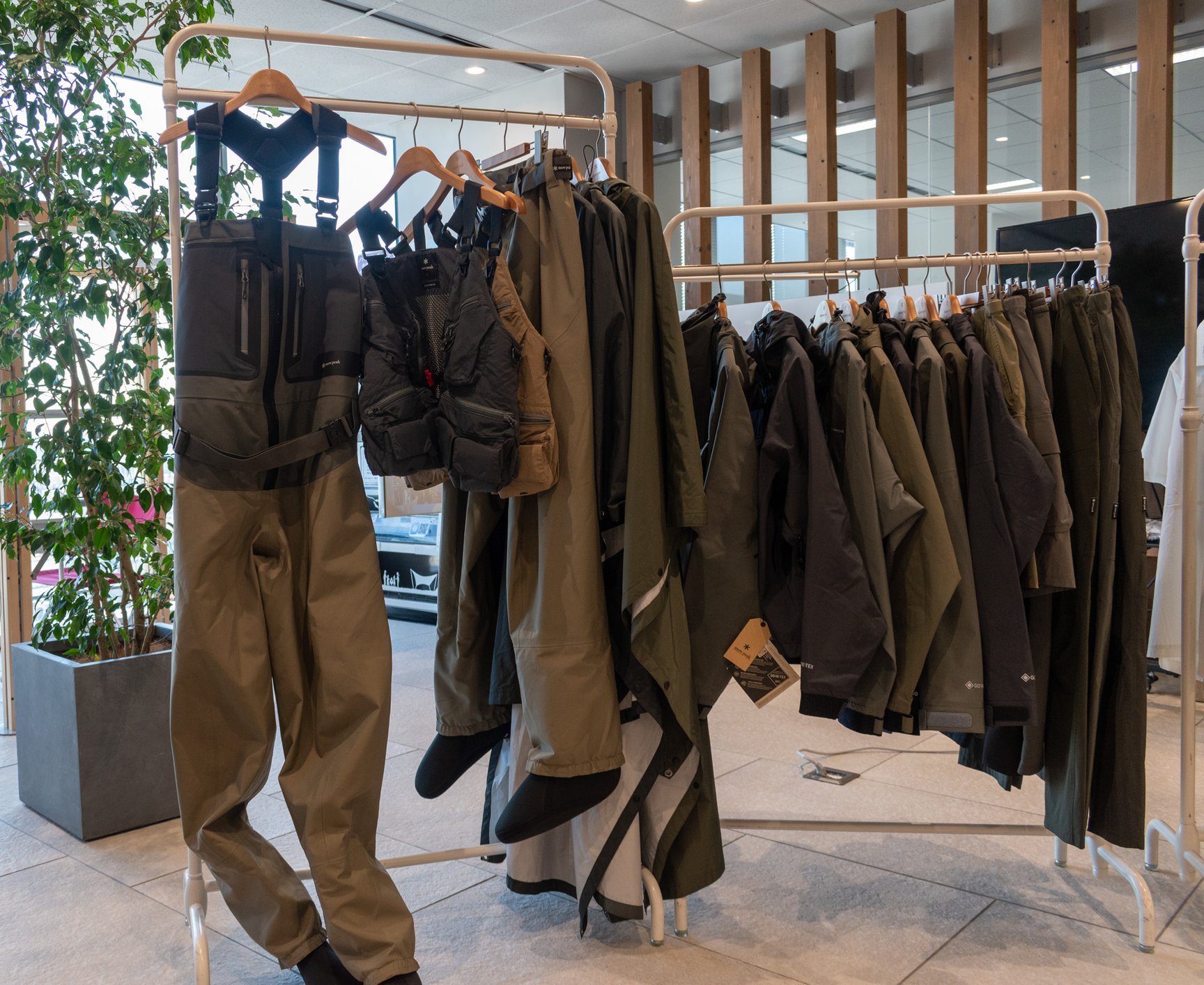 今回の説明会では、渓流や川、湖での釣りに特化した多機能なジャケット、ウェーダー、ベストのほかに、フィッシング以外のアウトウトドアシーンでも活用可能なシャツやパンツ、キャップ、ハット、バッグなどを発表。同ブランドらしい、アースカラーを主体とした街でも違和感なく着られるデザインで打ち出す。フィッシングはキャンプよりも体を動かすことが多いため、ポケットにジッパーや面ファスナーを採用して収納物を落としにくくするなど、着用シーンに合わせた仕様を取り入れている。