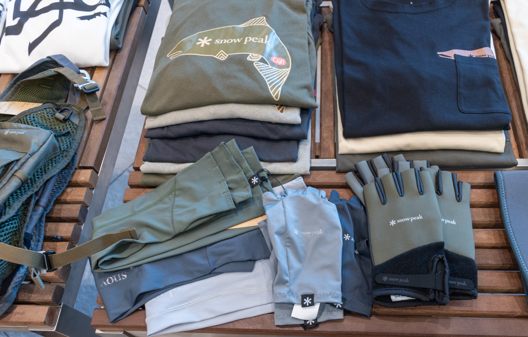 また、ニュージーランドの「エピック(Epic)」や、日本の「ティムコ(TIEMCO)」といったフィッシングブランドとコラボレーションしたフィッシングギアも展開するほか、2023年に開業したフィッシング用ポンド(管理釣り場)を有する初の直営キャンプフィールドであるスノーピーク白河高原キャンプフィールドを皮切りに、製品のレンタルやスタッフによるレクチャーが行われるキャンプとフィッシングを組み合わせた体験型の拠点の展開を計画している。