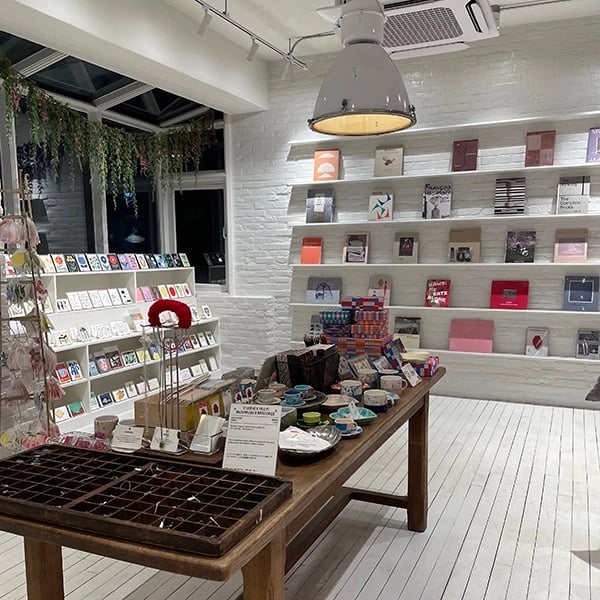 広々とした店内には、たくさんのアイテムがそろいます。取り扱っているのはポストカードやマスキングテープなどの雑貨から、キャンドル、香りもの、食品までさまざま。