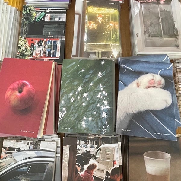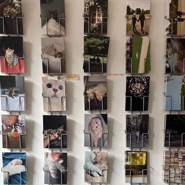 かわいらしい猫が多くプリントされたポストカードにも注目です。猫だけでなく景色や人、日本の風景などもありました。