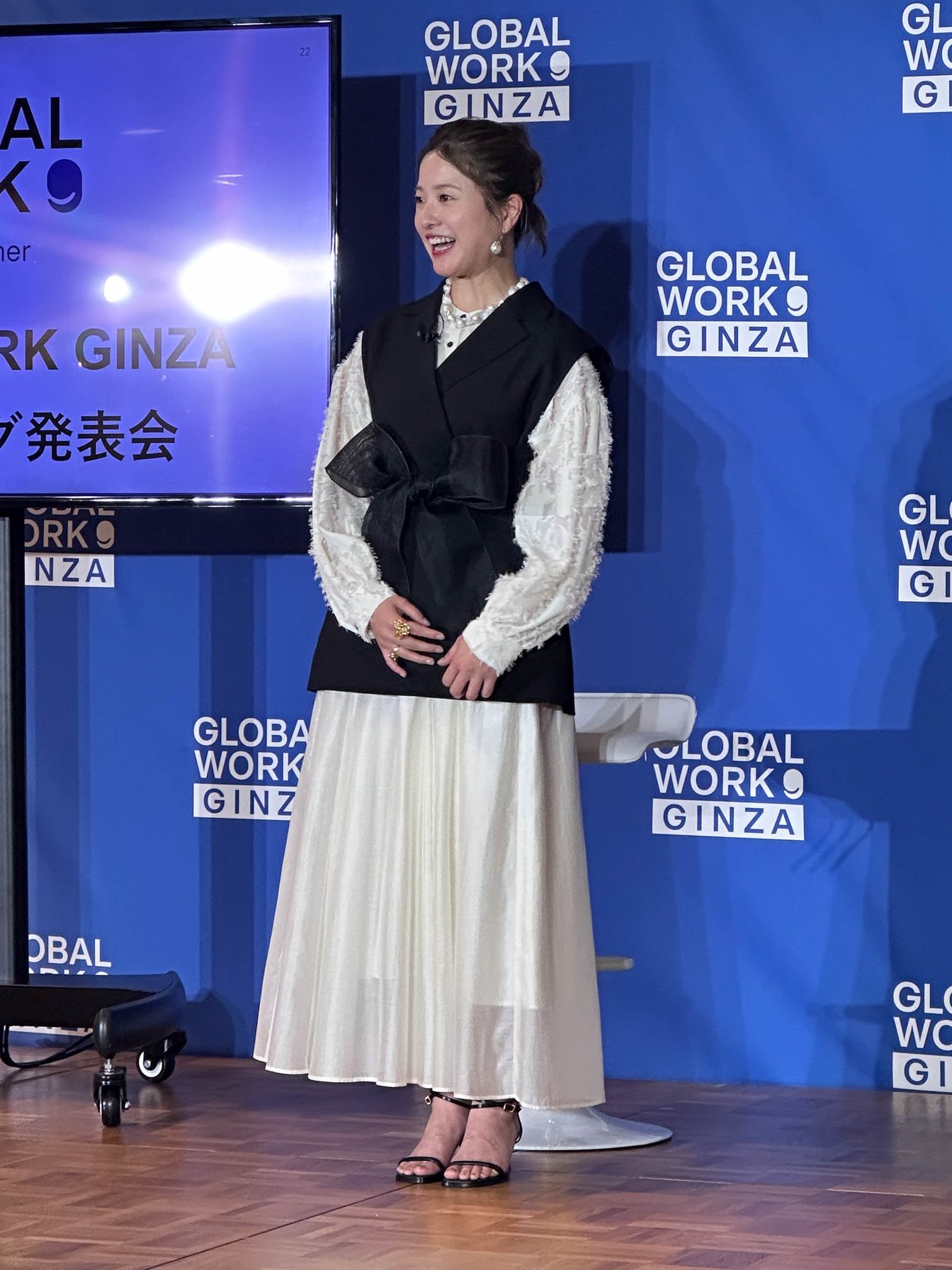 「自分ではセットアップをよく選びますが、今日はプロの方に着させていただいたのでこういった仕上がりになっています」と笑いを誘う吉高。