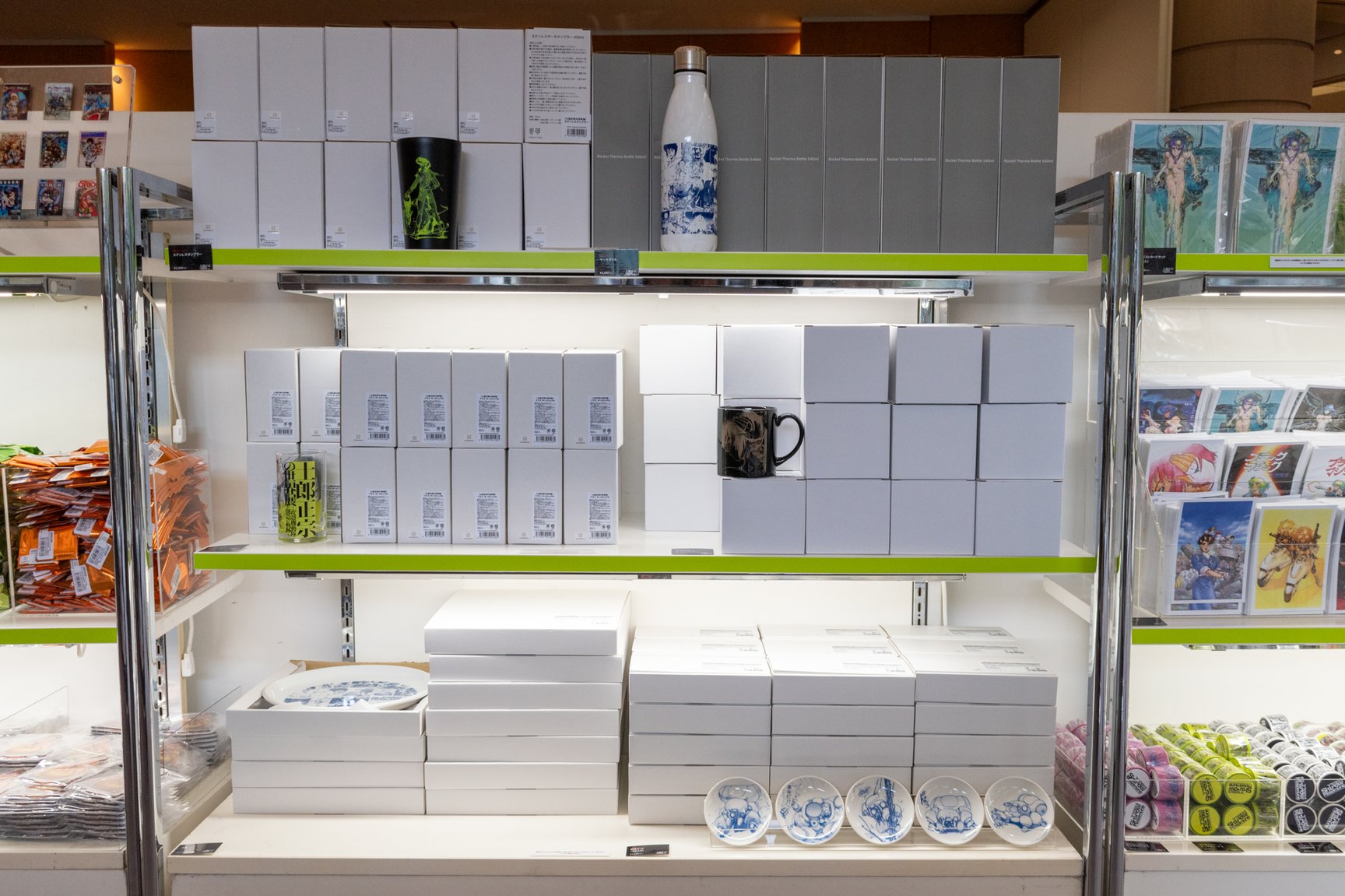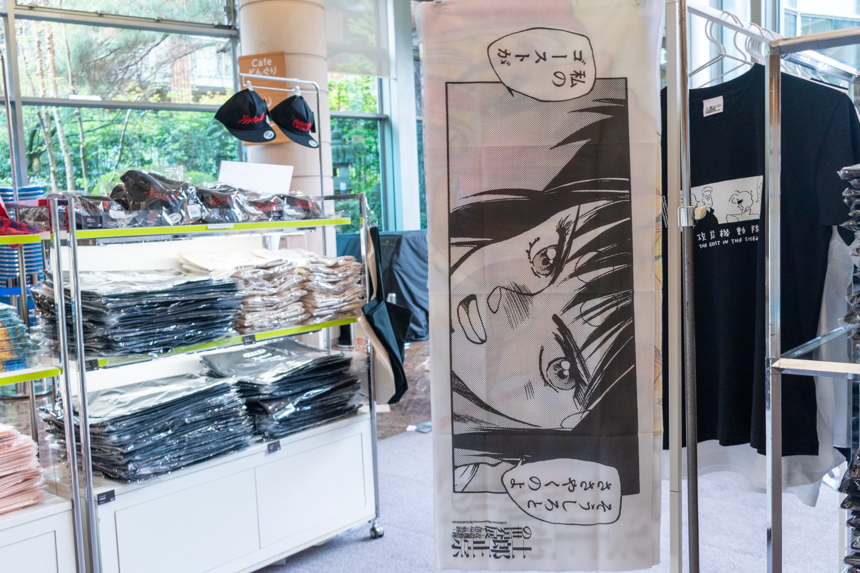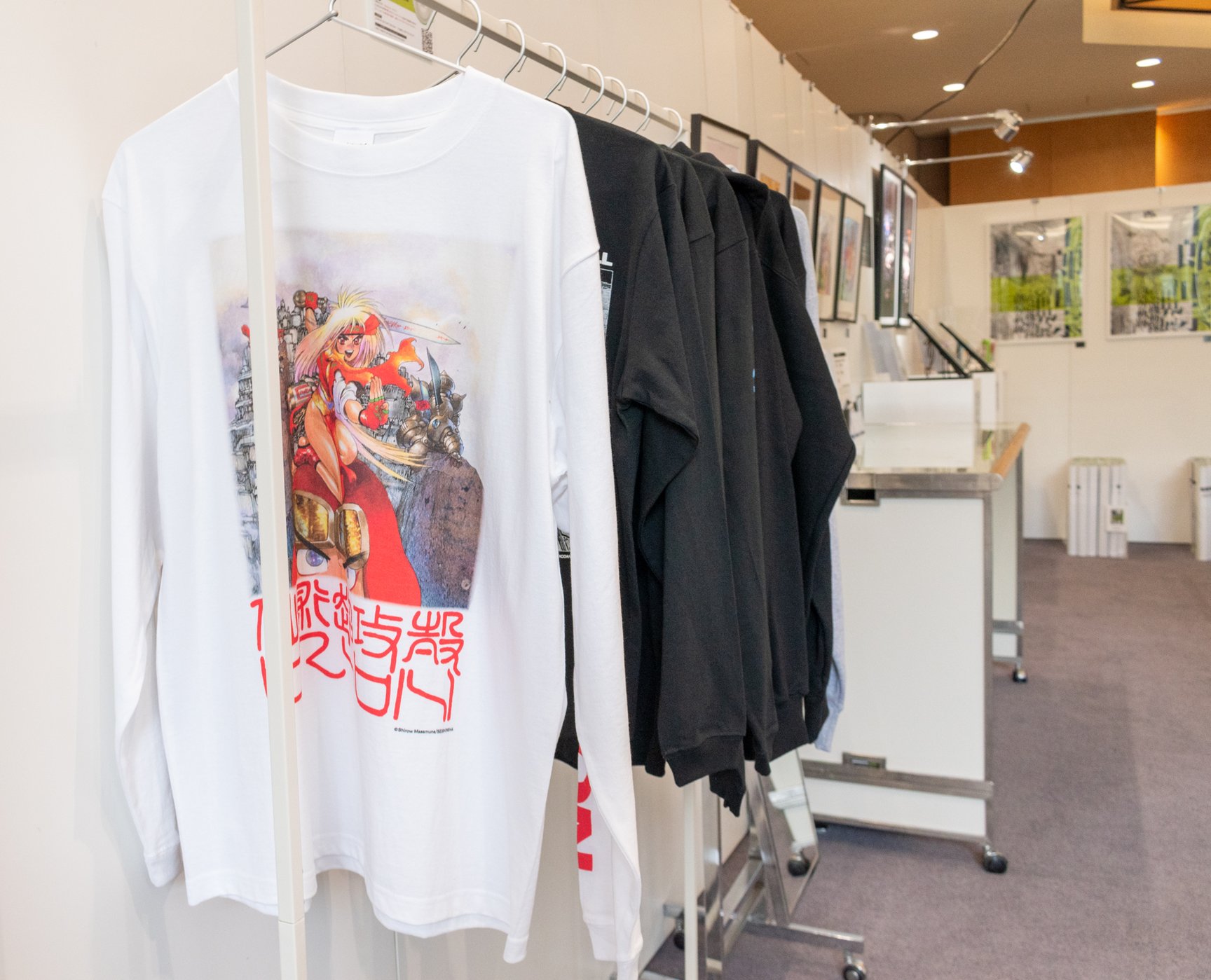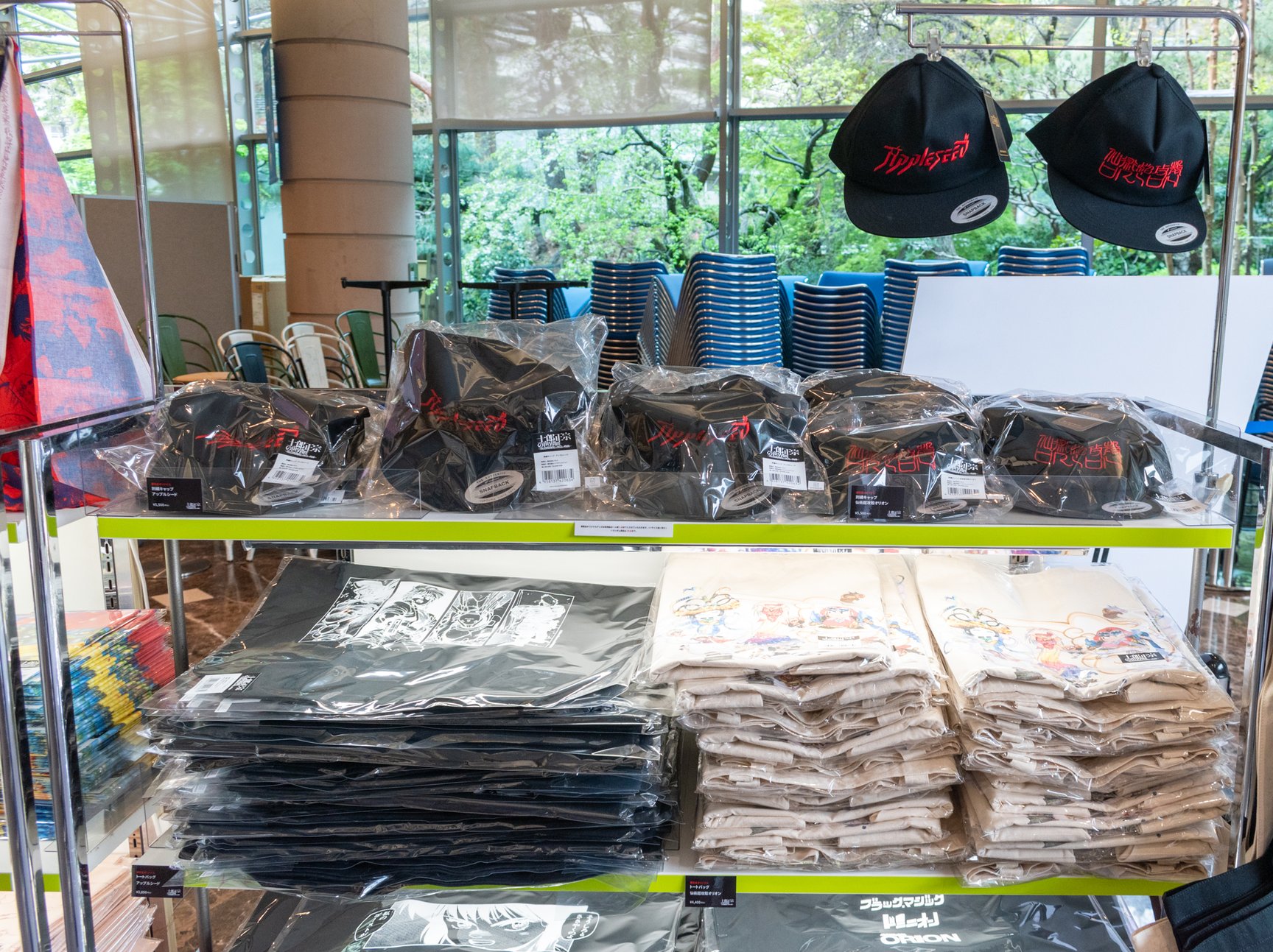 近年ファッションアイテムとして注目が高まっているアニメTシャツ。今回は展覧会オリジナルTシャツやスウェットパーカに加え、「ギークス ルール(GEEKS RULE)」や「ブレインデッド(BRAIN DEAD)」などの人気ブランドとのコラボレーションTシャツも多数展開。トートバッグやキャップ、靴下などのファッションアイテムのほか、「ベアブリック(BE@RBRICK)」とのコラボレーショントイやフィギュア、サーモタンブラーなど、幅広いラインナップを揃える。