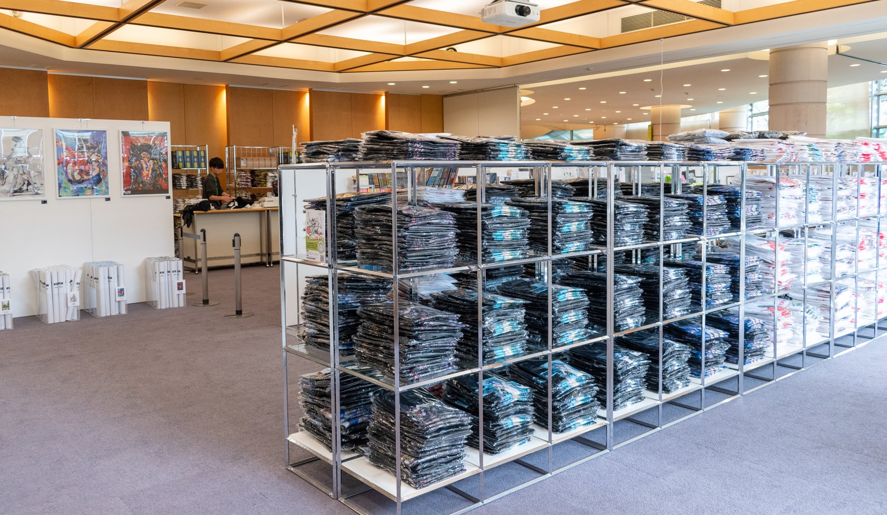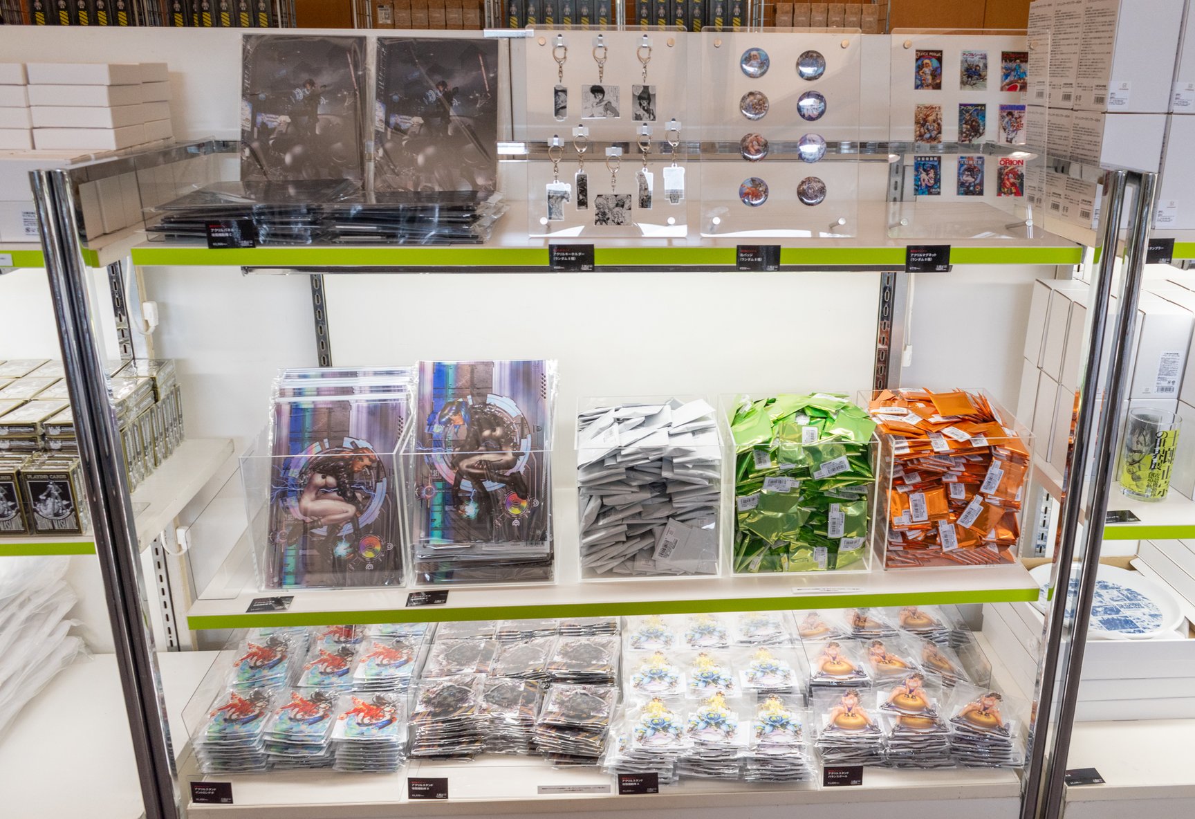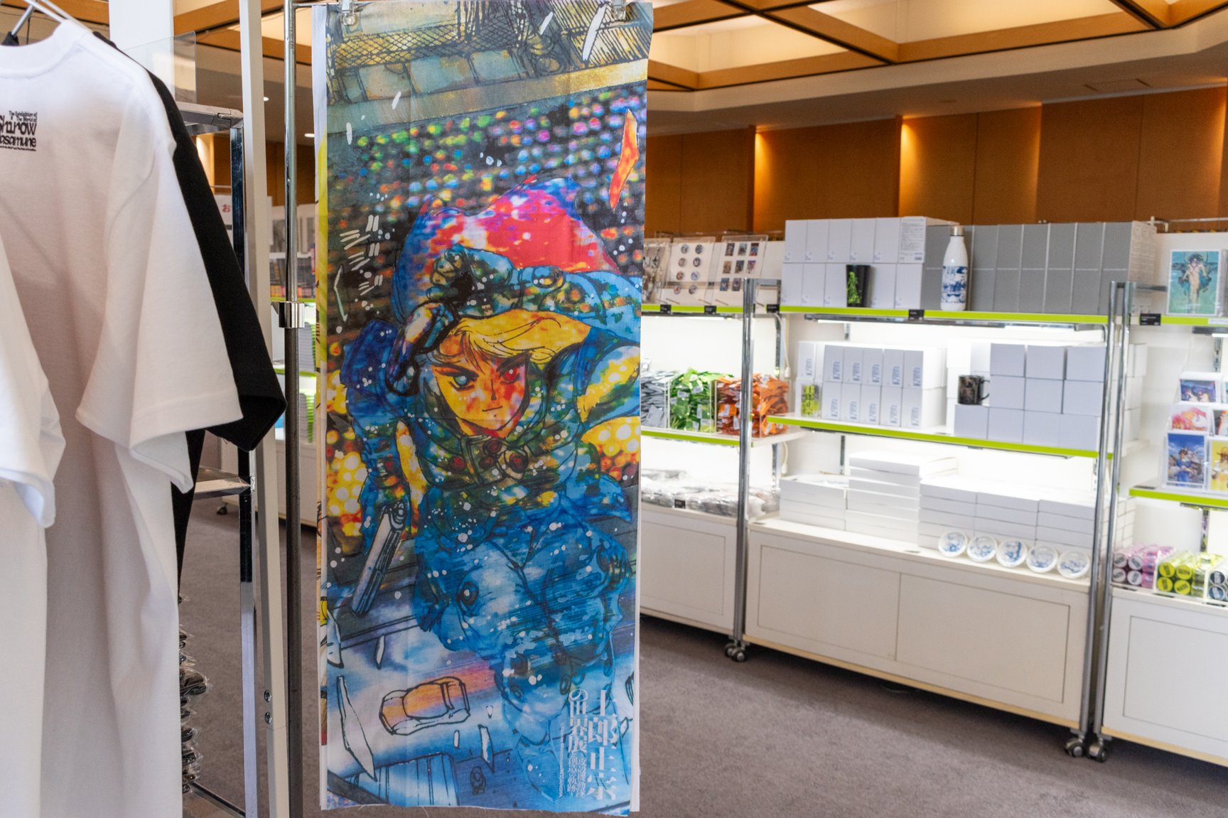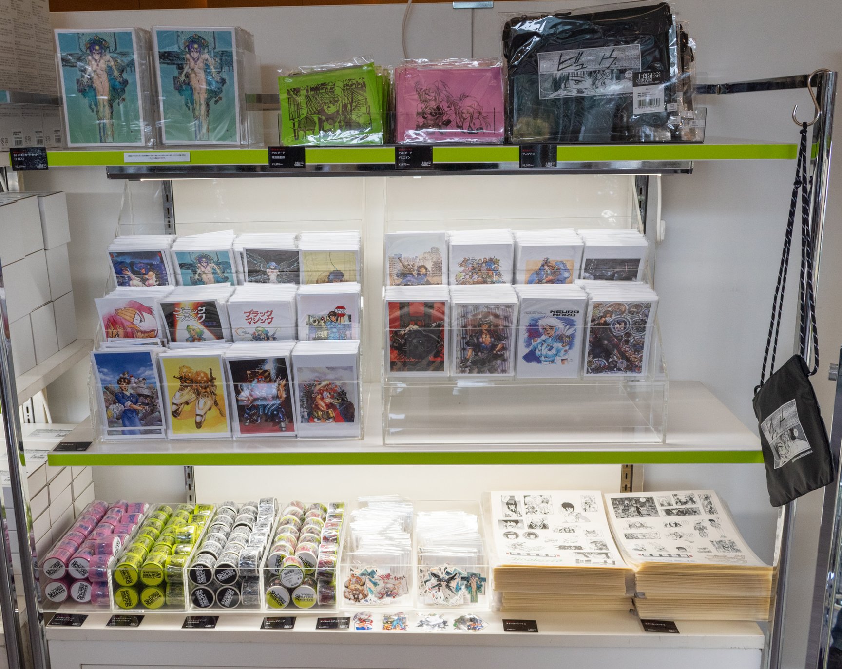 近年ファッションアイテムとして注目が高まっているアニメTシャツ。今回は展覧会オリジナルTシャツやスウェットパーカに加え、「ギークス ルール(GEEKS RULE)」や「ブレインデッド(BRAIN DEAD)」などの人気ブランドとのコラボレーションTシャツも多数展開。トートバッグやキャップ、靴下などのファッションアイテムのほか、「ベアブリック(BE@RBRICK)」とのコラボレーショントイやフィギュア、サーモタンブラーなど、幅広いラインナップを揃える。
