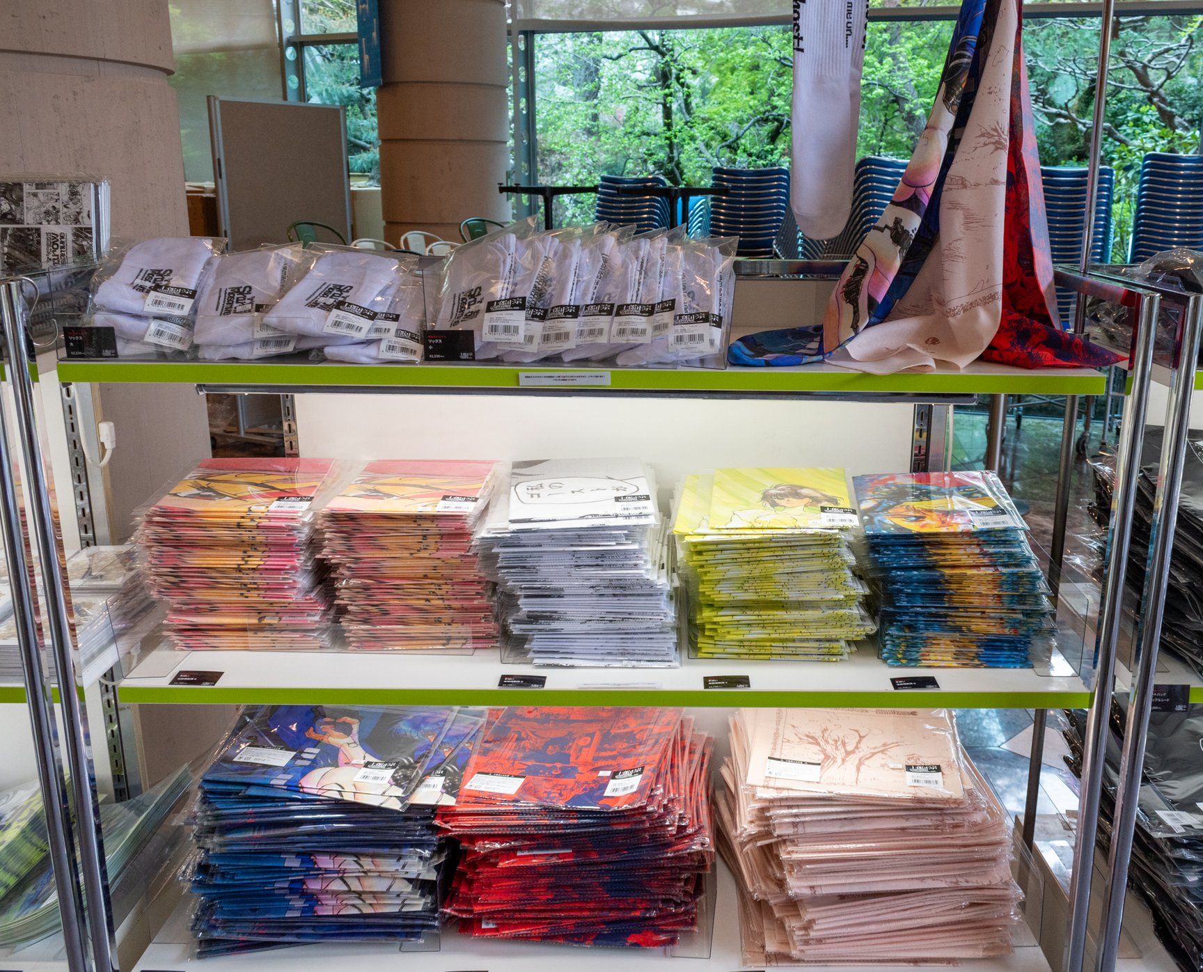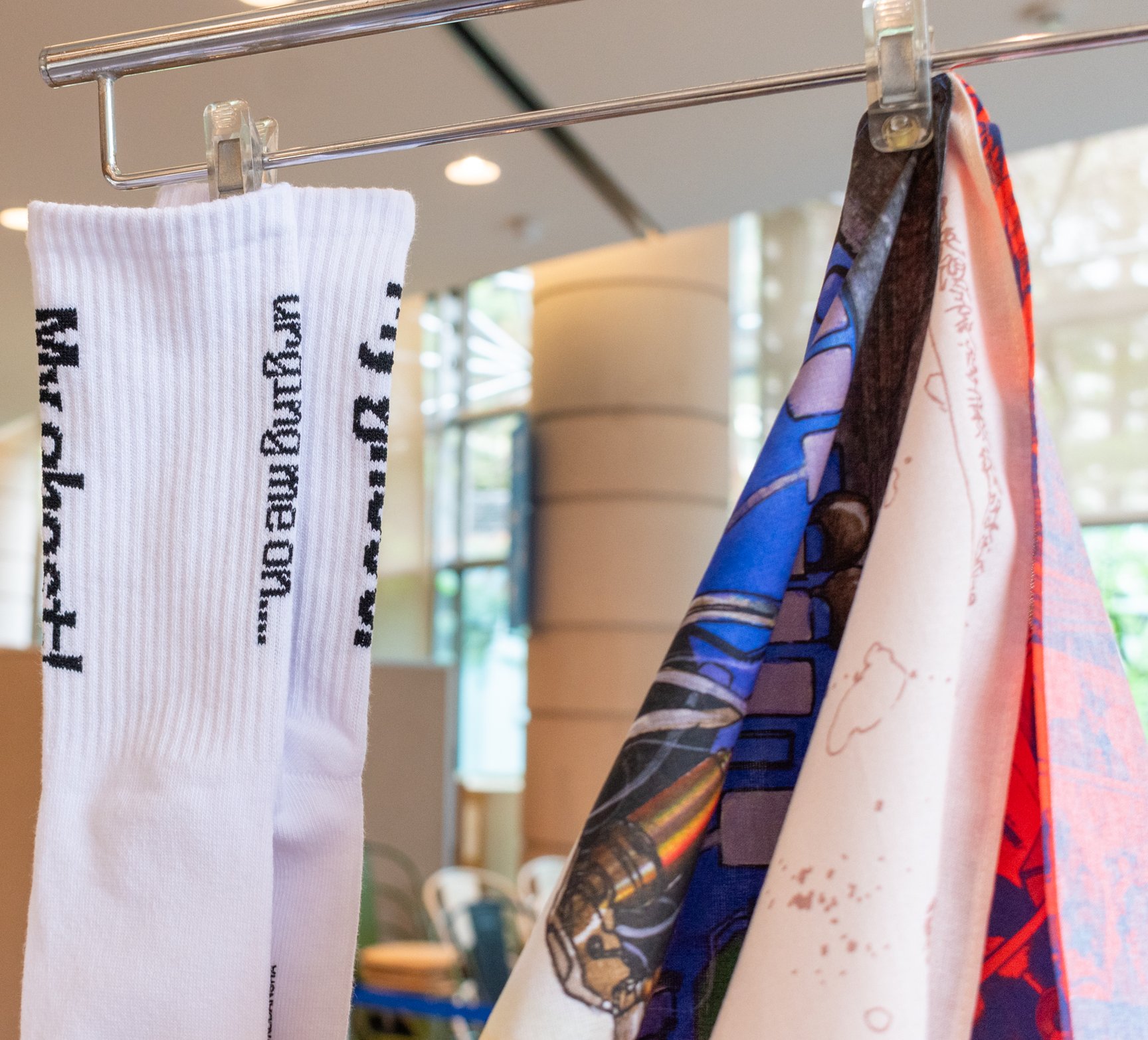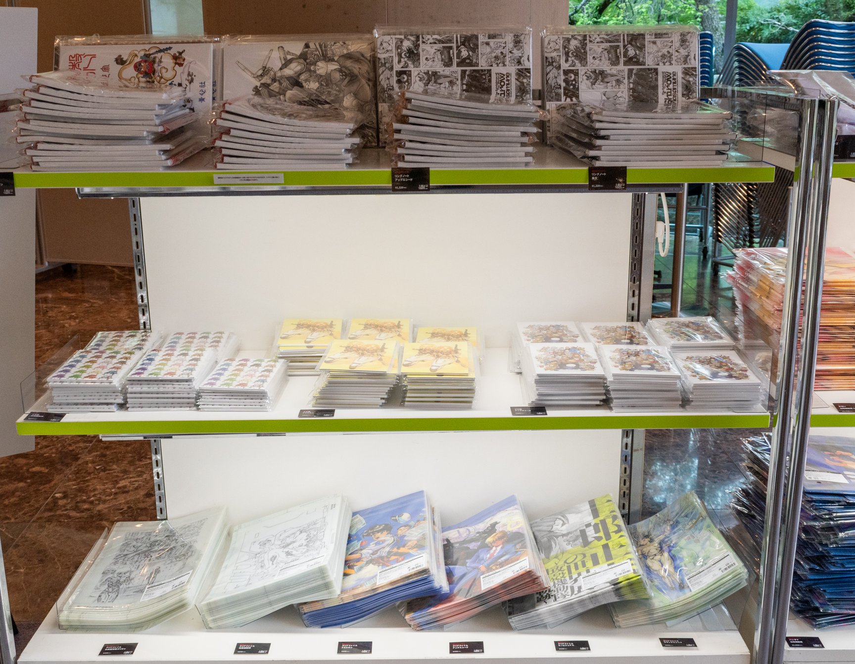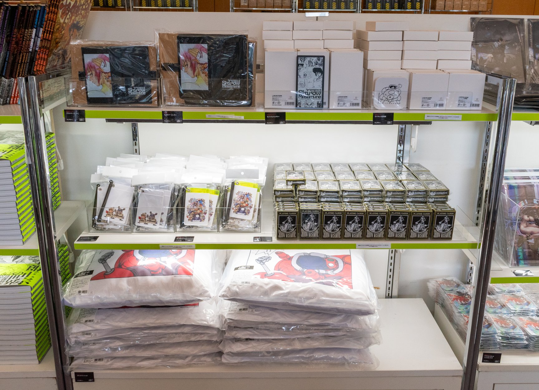 近年ファッションアイテムとして注目が高まっているアニメTシャツ。今回は展覧会オリジナルTシャツやスウェットパーカに加え、「ギークス ルール(GEEKS RULE)」や「ブレインデッド(BRAIN DEAD)」などの人気ブランドとのコラボレーションTシャツも多数展開。トートバッグやキャップ、靴下などのファッションアイテムのほか、「ベアブリック(BE@RBRICK)」とのコラボレーショントイやフィギュア、サーモタンブラーなど、幅広いラインナップを揃える。