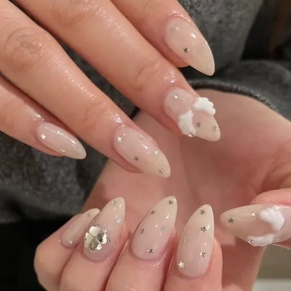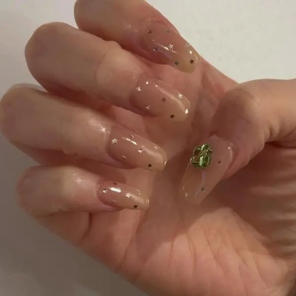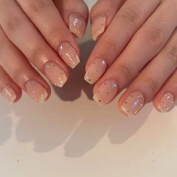また、先ほどのホログラムの星と組み合わせてドット風にすると、今っぽさUP。ホロの煌めきが特徴的なので、主張しないのになんだか目を引く、理想的なこなれネイルが楽しめそうです。