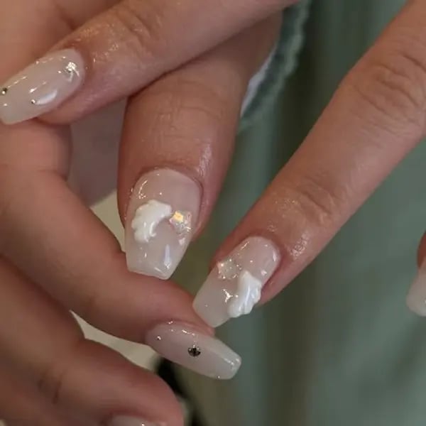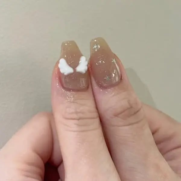ラインストーンで作るエンジェルモチーフも流行りなので、かわいい要素を残しつつ、大人っぽく仕上げたい方はトライしてみてもいいかも。