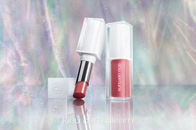 リップも2種をラインナップ。リキッドタイプの「キヌケアグローアップ グリーム」(限定2色、各5060円)は、偏光パールで血色感あふれる「ピンク フィルター」と、ブルーパールを加えたラベンダーカラーの「フューシャ ラッシュ」を揃える。スティックタイプの「キヌケアヌード グリーム」(限定2色、各5060円)は、ブルーのツヤ感で涼しげな「VR ライラック」と、グリーンが鮮やかに光る「AR ヌード」を用意した。