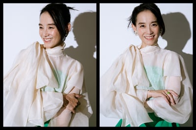 今回篠原は、宝庫に収められた水瓶「漆胡瓶」に着想したドレスを制作した。チームには、「コム デ ギャルソン(COMME des GAR?ONS)」のドレス制作に携わった安部陽光が参加。水瓶のフォルムを3Dデジタルデータをもとに人尺へ割り出すことで、本物の質感をそのままデザインに落とし込んだという。文様は400点以上のパーツを手作業でトレースし、経年変化を表現するために真鍮のエイジング加工を施している。ヴィジュアルは、アートディレクターの池澤樹が担当。篠原によるアートピースの制作は、2022年に発表した「THE LEATHER SCRAP KIMONO」以来、約3年ぶりとなった。