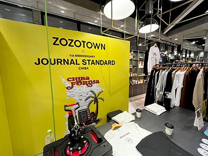 出店ブランドと実施した企画では例えば、ベイクルーズが展開する人気ブランド「ジャーナルスタンダード」から実店舗の集客も強化したいという要望を受け、2023年10月に「ジャーナルスタンダード」ペリエ千葉店の1周年に合わせて、ゾゾが同店でポップアップイベントを開催した(画像?)。