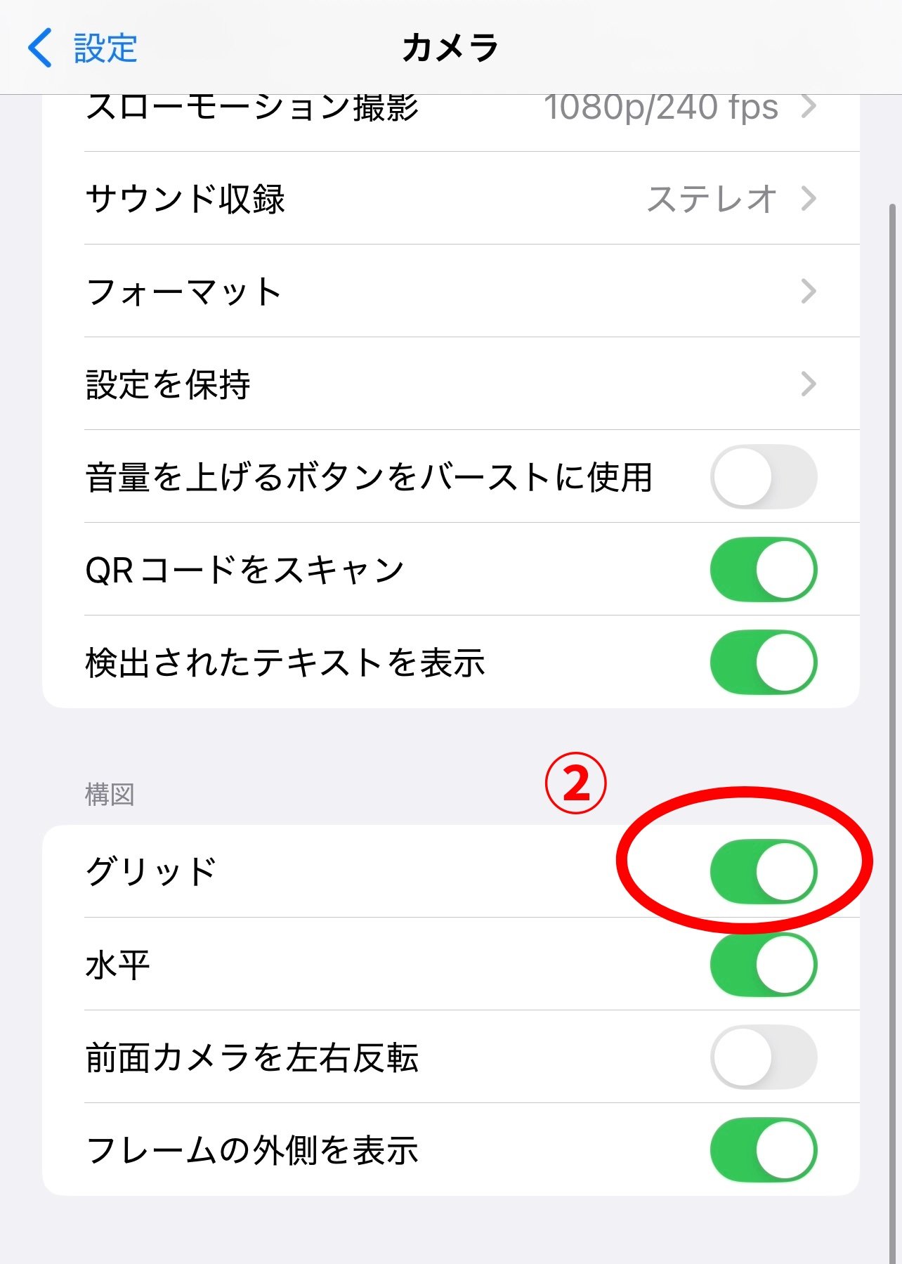 □使用するカメラはスマートフォンの基本カメラ(加工フィルターは控え、微調整に留める)□レンズは標準の1x□グリッドをONの設定にして構図を調整できるようにする