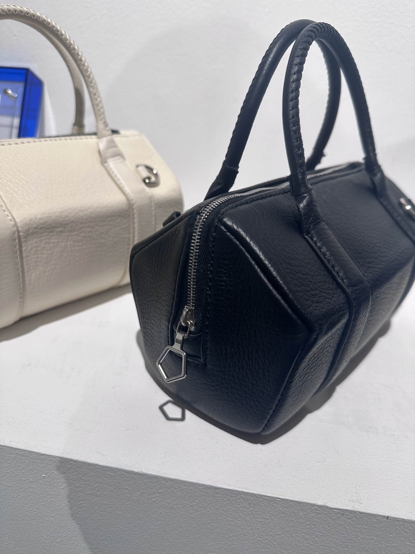 ブランドのアイコンマークは、一辺の長さと対角線の長さが黄金比とされる「五角形」。デビューコレクションでは五角形をモチーフにしたレザーバッグを発表した。ソリッドな見た目に反してソフトな手触りのレザーや、エレメント(務歯)を通常よりも細かくすることでスムーズな開け心地を実現した特注ファスナーなど柔らかな印象を与えるディテールを追求した。2サイズ展開で、価格は3万800?5万2800円。