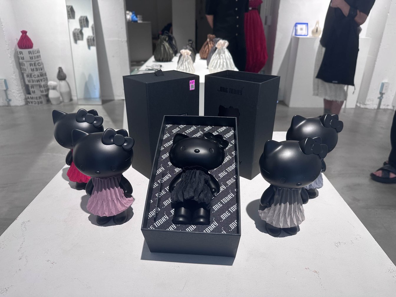 また、ハローキティの顔の縦横比も黄金比と呼ばれていることから、ONE DAY社のハローキティのアートフィギュア「HELLO KITTY BLACK SERIES」のドレスも製作。「KINCHACK」バッグをワンピースにしたような造形のドレスで、商品化も検討しているという。