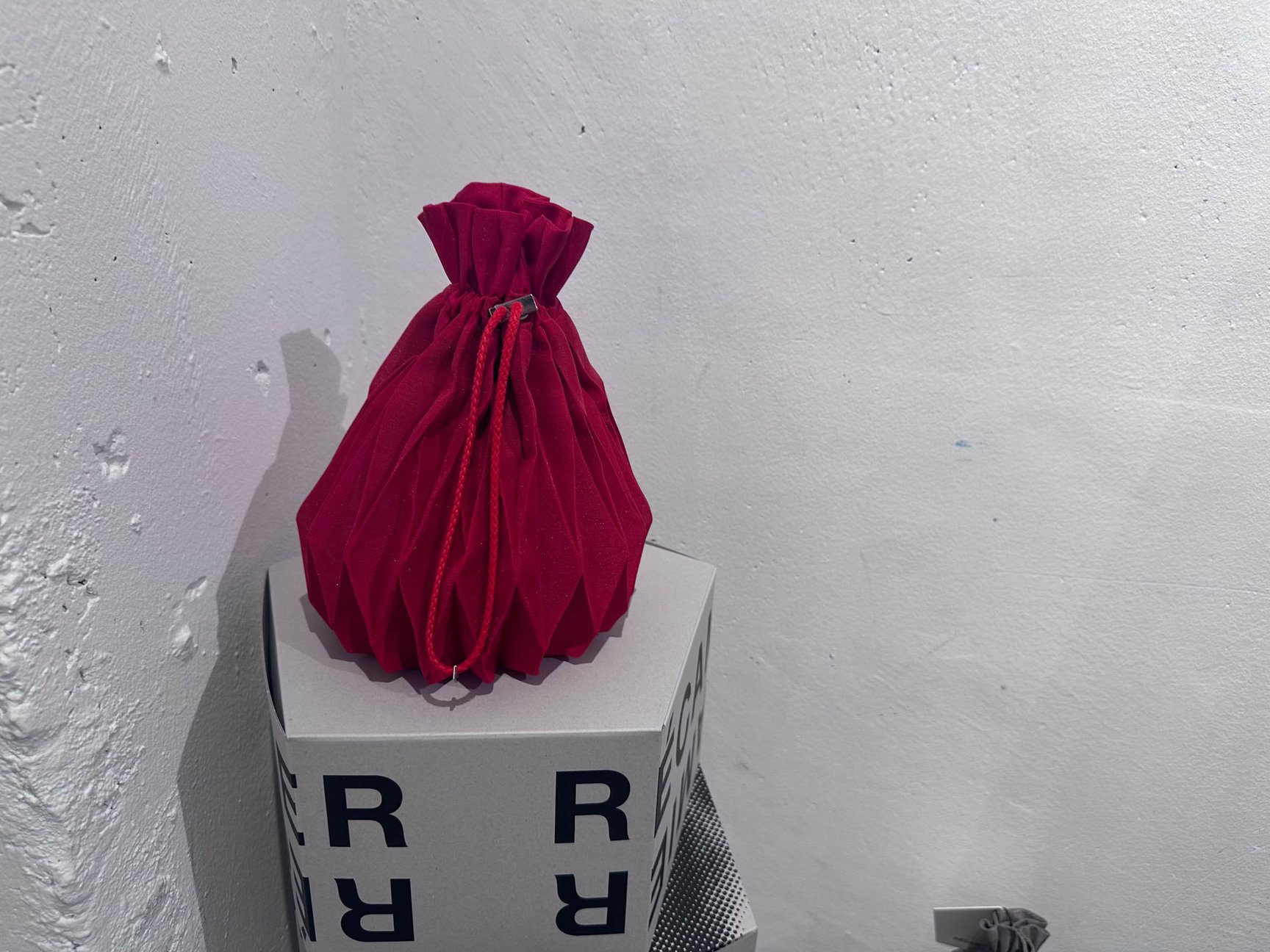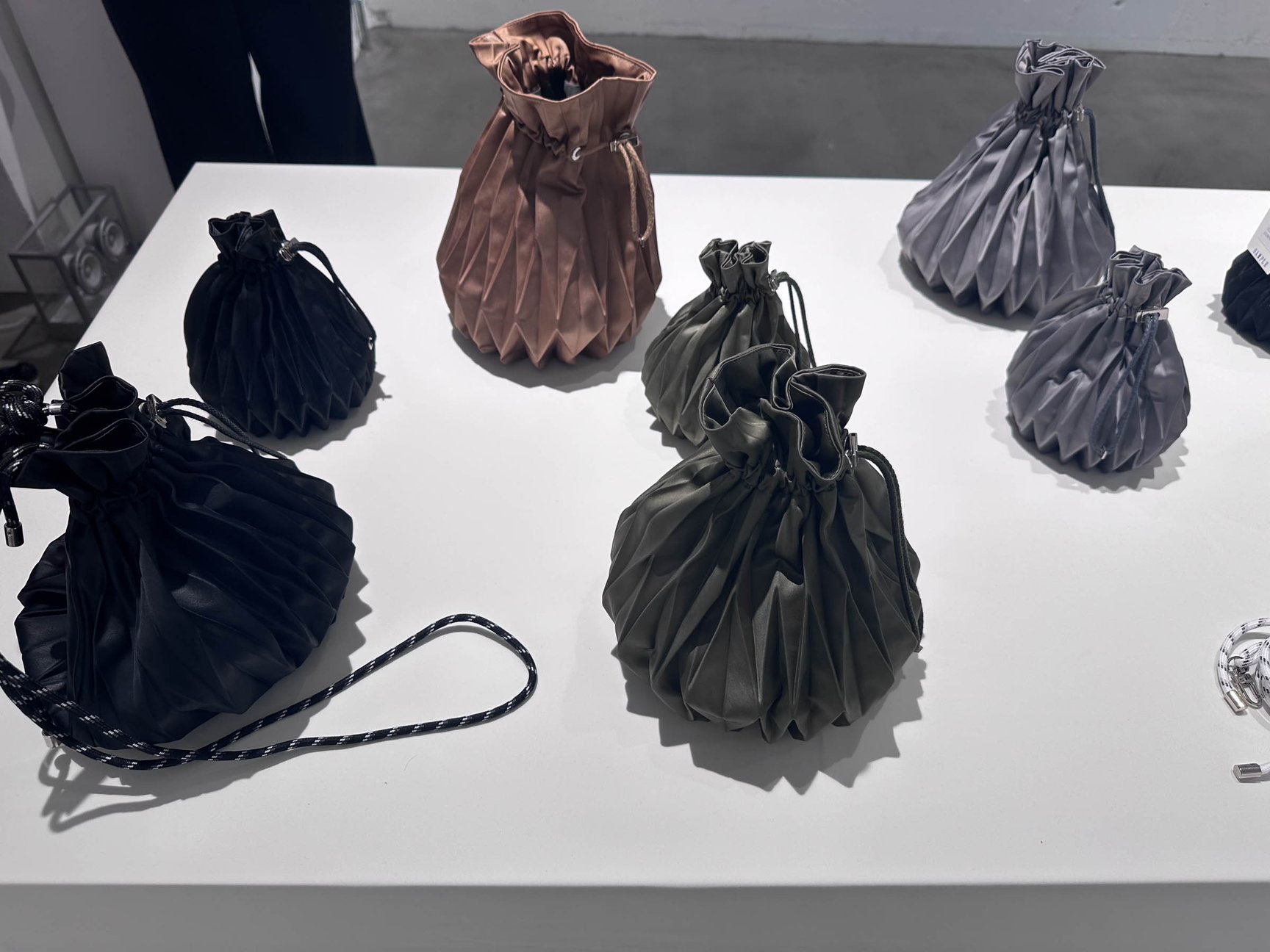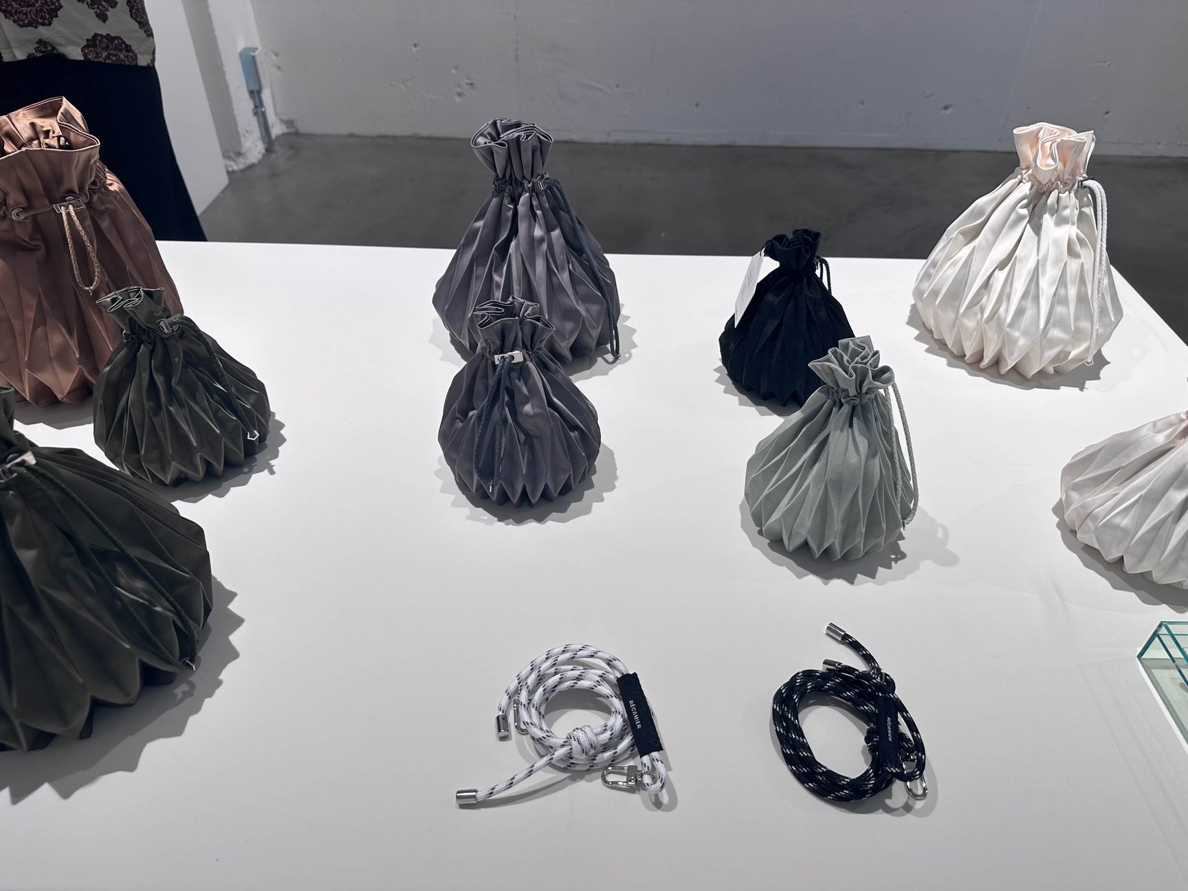 アイコンモデル「KINCHACK」は、ミドラで多用している変形プリーツを巾着に応用。「黄金比」の考えを元に設計されたパターンで立体的に組み立て、日本古来の「巾着」をモチーフにしたユニークな造形に仕上げた。サテンとオーガンジーの2種類の生地でそれぞれ2サイズを揃え、価格はサテンが1万4300?1万7600円、オーガンジーが1万3200?1万6500円。比較的手に取りやすい価格で展開するなど、ミドラやオーハルのエントリーアイテムとして幅広い客層へのリーチを目指す。今後はアジアを中心に海外展開も視野に発信していくという。