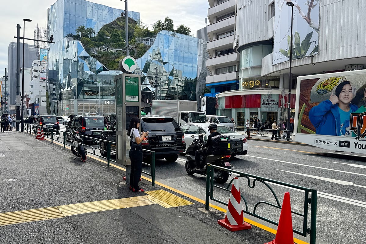 電話ボックスはなくなりましたが、バス停は健在。教会の場所にはラフォーレ原宿と、オリンピアアネックスが建っていた場所には東急プラザ原宿「ハラカド」がそびえたっています。
