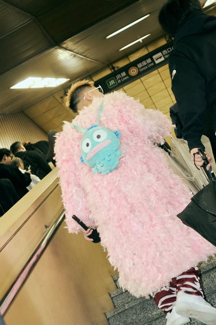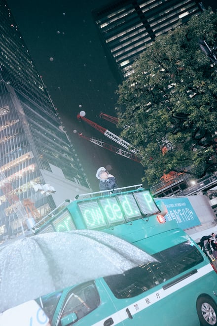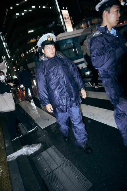 ハロウィン当日、現在の渋谷は雨模様ながら歩行が困難なほどの人出に。「禁止だよ!迷惑ハロウィーン」の横断幕を掲出している駅前は、車両の通行を禁止するなど警察による交通規制が行われている。ただ、19時時点で仮装をしている人はごく僅か。編集部が確認できたのは、漫画ワンピースの「ドフラミンゴ」風の衣装で、サンリオの人気キャラクター「ハンギョドン」のバッグを背負った男性のみだった。