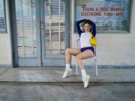 コラボでは「女性同士のつながりから生まれる力と独自の女性らしさ」を掲げ、ミャウのシグネチャーである「フェミニンで構築的なフォルム」にアディダス オリジナルスのスポーティなDNAを融合し、「新たなフェミニン?スポーツスタイル」を提案。モータースポーツから着想を得て再解釈したアパレルやアクセサリーをラインナップし、従来男性が中心であった領域においても、女性が自分らしく表現することを尊重できる空間に再構築することを目指したという。