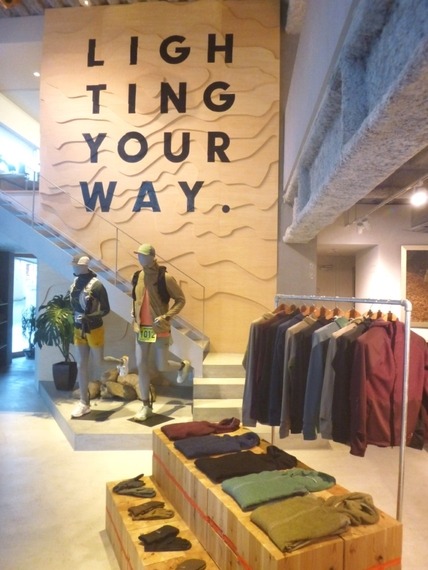 Caption goes here.直営店は2フロアで、壁にはブランドコンセプトの「Lighting Your Way」(あなたの道を照らします)