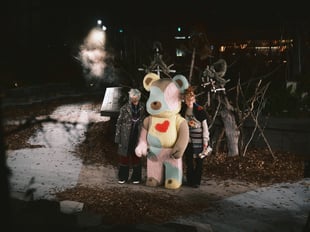 2階のショップでは、オープン時はメンズ、ウィメンズの2025年秋冬コレクションのアイテムに加えて「Ami Holidays」コレクションも用意。ブランド初となるキッズアイテムの販売も行う。特典として、16万5000円以上のバッグを購入した人にはオリジナルのクロワッサンキーリングを配付する。
