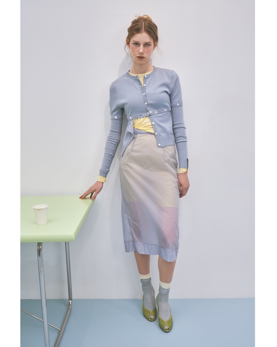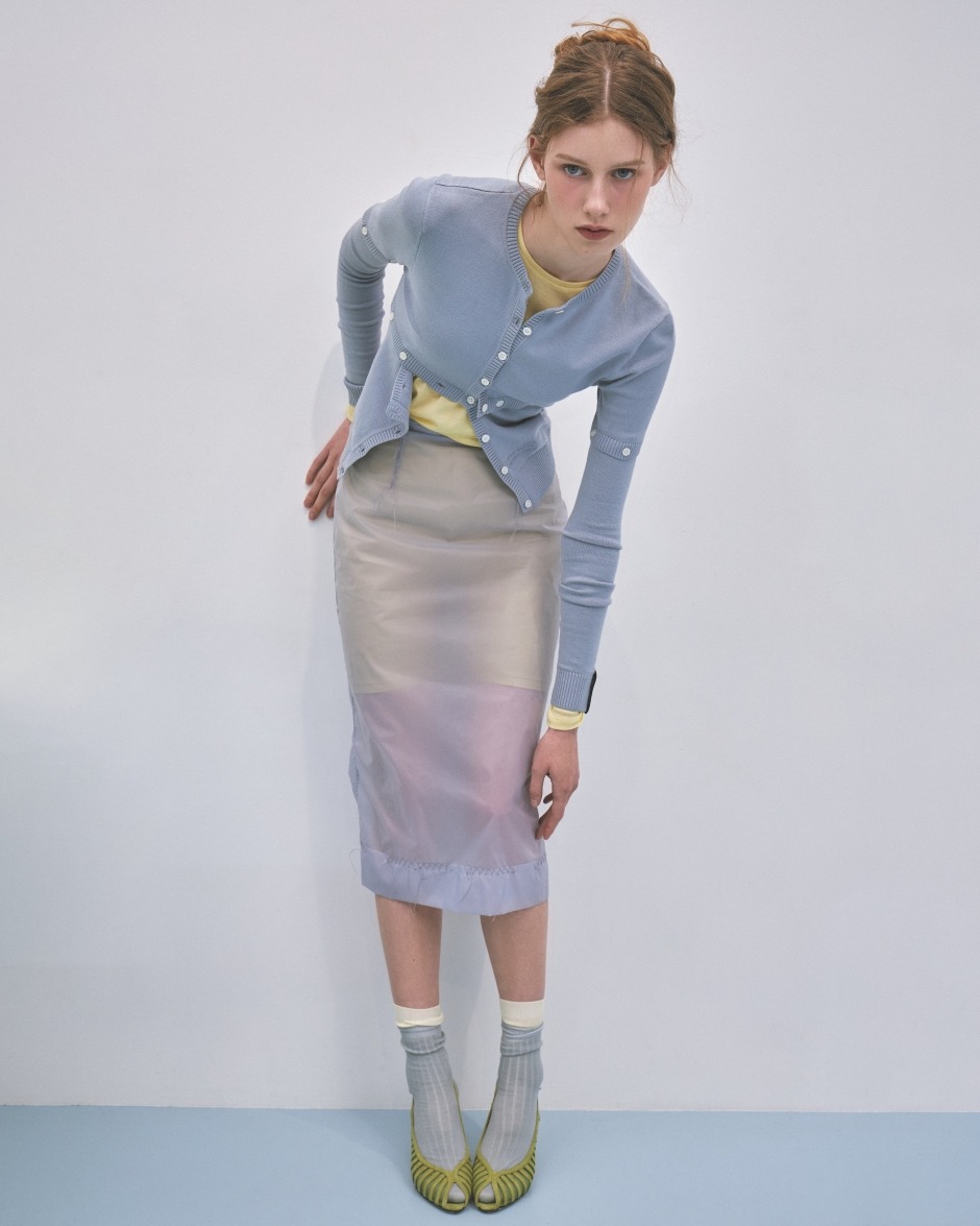 cardigan by ROKH, top by BIRDY, skirt by MAISON MARGIELA, shoes by GRACIANA, socks stylist's own