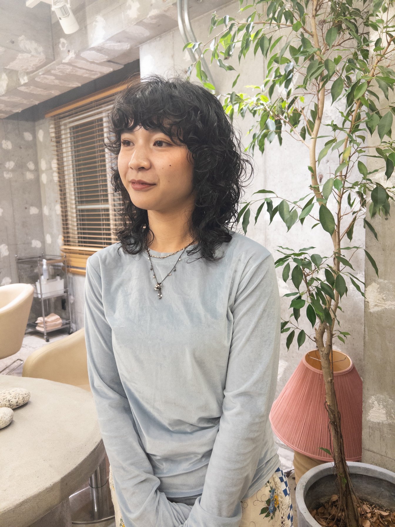 強めパーマでとにかく可愛く、楽にたのしむミディアムヘア