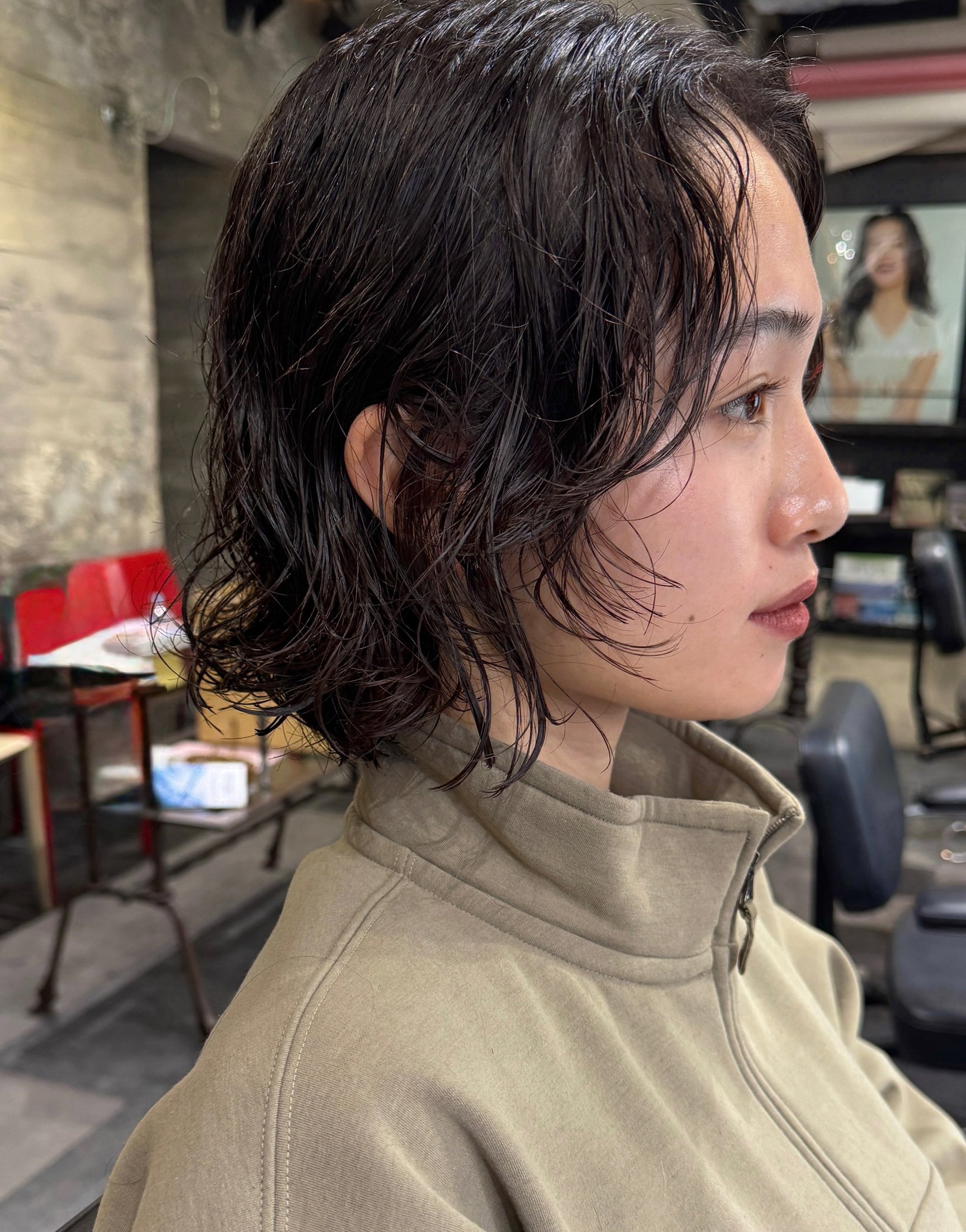 ナチュラルなくせ毛風パーマスタイル。髪を濡らしてムースをつけるだけで、ものの5分で仕上がる扱いやすさも魅力です!エッジィすぎないシンプルなファッションとの相性がいいと思います。メイクアップはガーリーになりすぎない程度に色みで遊ぶのが◎。(@ryusei_wada)