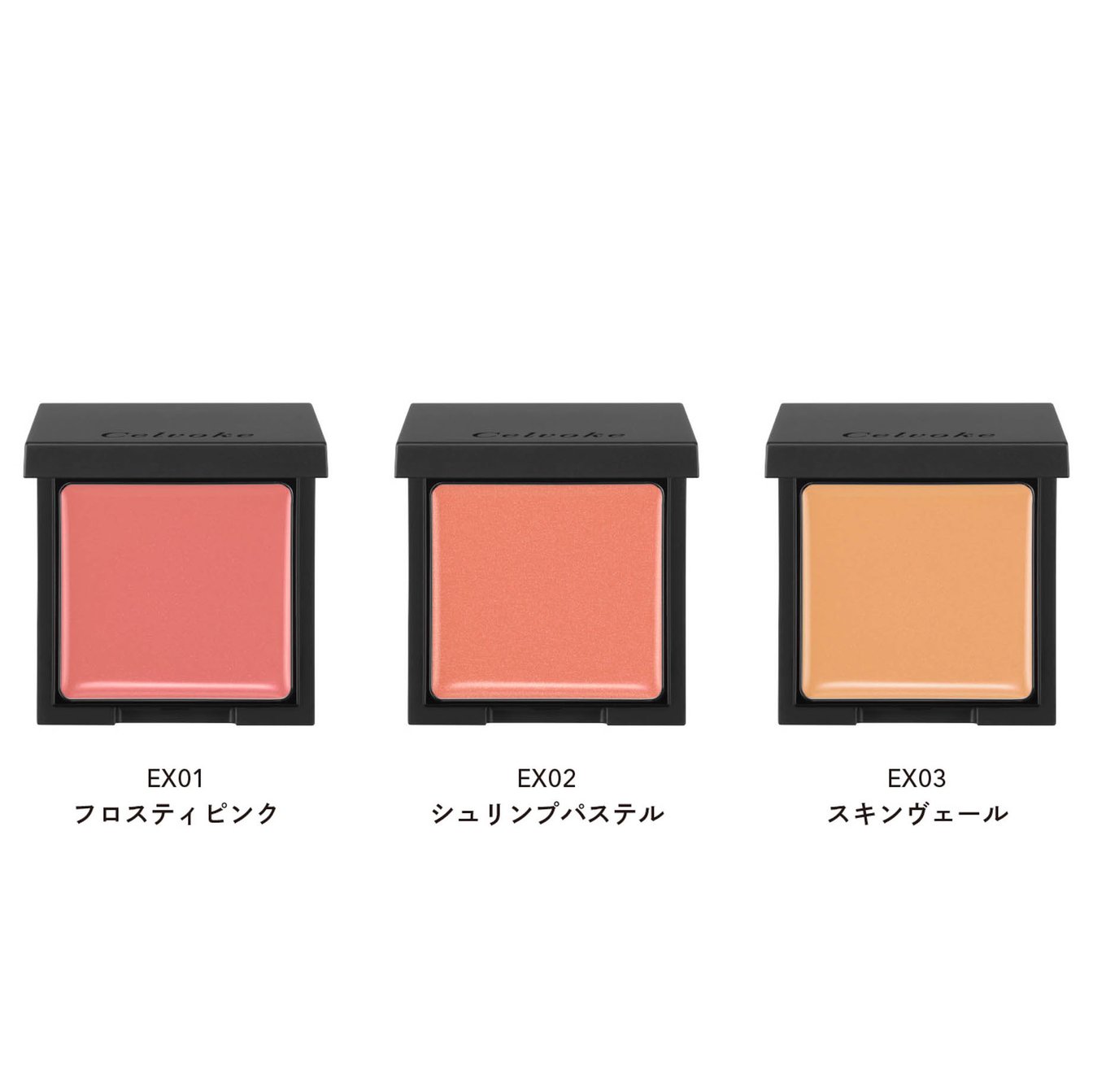 「ブロウイング フェイスカラー」は頬にのせるとクリームがパウダーに変化し、ふわっと色付いたチークが完成する新感覚のフェイスカラー。毛穴や小ジワを整えてスムースな肌になるのも嬉しいポイントです。肌の内側から滲んだ様な血色を生む「EX01 フロスティピンク」、ヘルシーなコーラルオレンジ「EX02 シュリンプパステル」に加え、ライトカバーのコンシーラーとしても使えるベージュトーンの「EX03 スキンヴェール」の3色を展開。ケース外側のブランドロゴはコレクションのキーカラーであるピンクカラーであしらった限定仕様です。