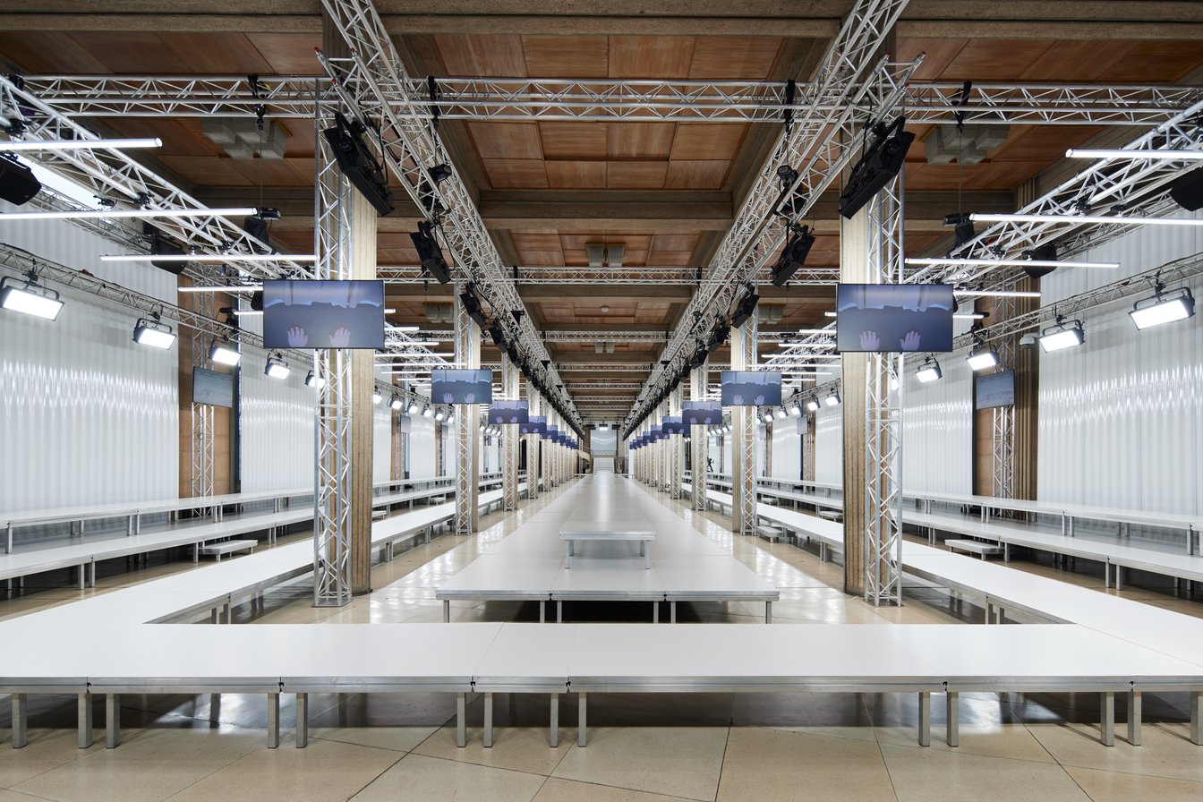 ミウッチャ?プラダ(Miuccia Prada)が手掛ける「ミュウミュウ(MIU MIU)」が「WAYS OF LOOKING 」と題した2023年秋冬コレクションを発表した。会場はパリのイエナ宮(Palais d’Iéna)で、白いランウェイが一段高い場所に作られた。これは観客が服を「観察しやすいように」という配慮によるもの。