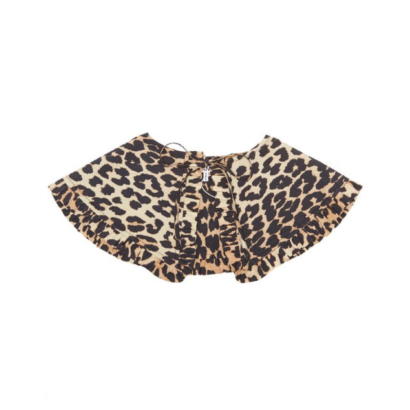 レオパードプリントが配された「ガニー(Ganni)」のカラーはかなり大胆。グッドガールな付け襟だからこそ尖ったムードでコーティングするのがクールなバランス。いつものルックに合わせれればこれまでなかったフレッシュルックの出来上がり。