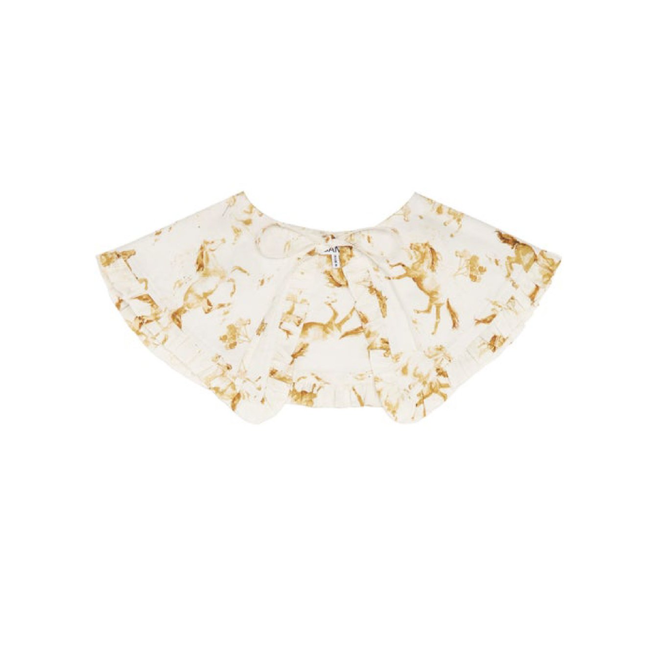 オーガニックコットンを使用したこちらのカラー。一見ホワイトとゴールドの大理石パターンのように見えるのですが、よく見ると美しいホースのプリントが。