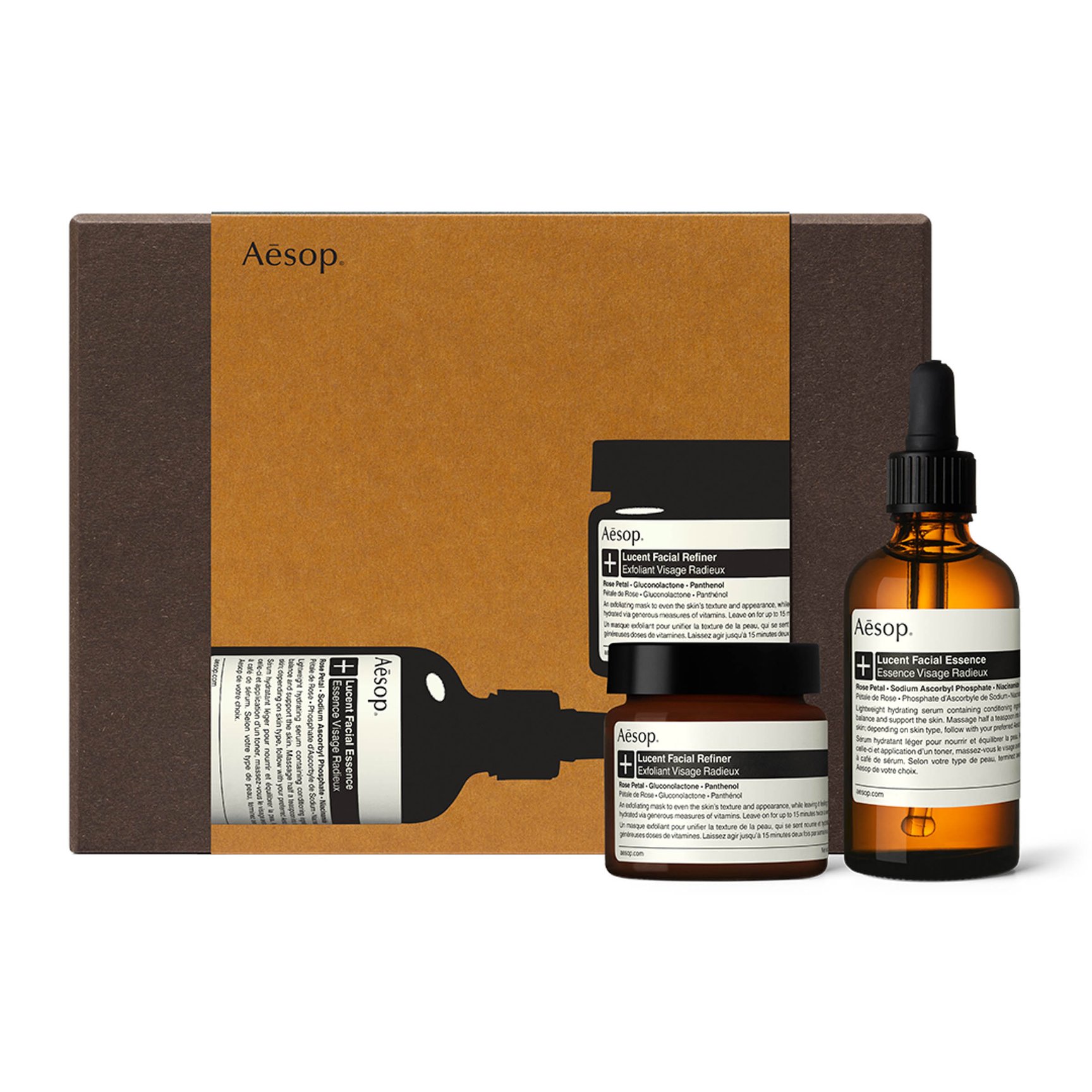 「バスルーム イルミネーション」には、晴れやかに澄んだ肌を叶える「ルーセント シリーズ」から、肌の水分と油分のバランスを整えツヤ肌へと導く美容液と、肌のキメをなめらかに仕上げておだやかな角質ケアができるマスク収められています。