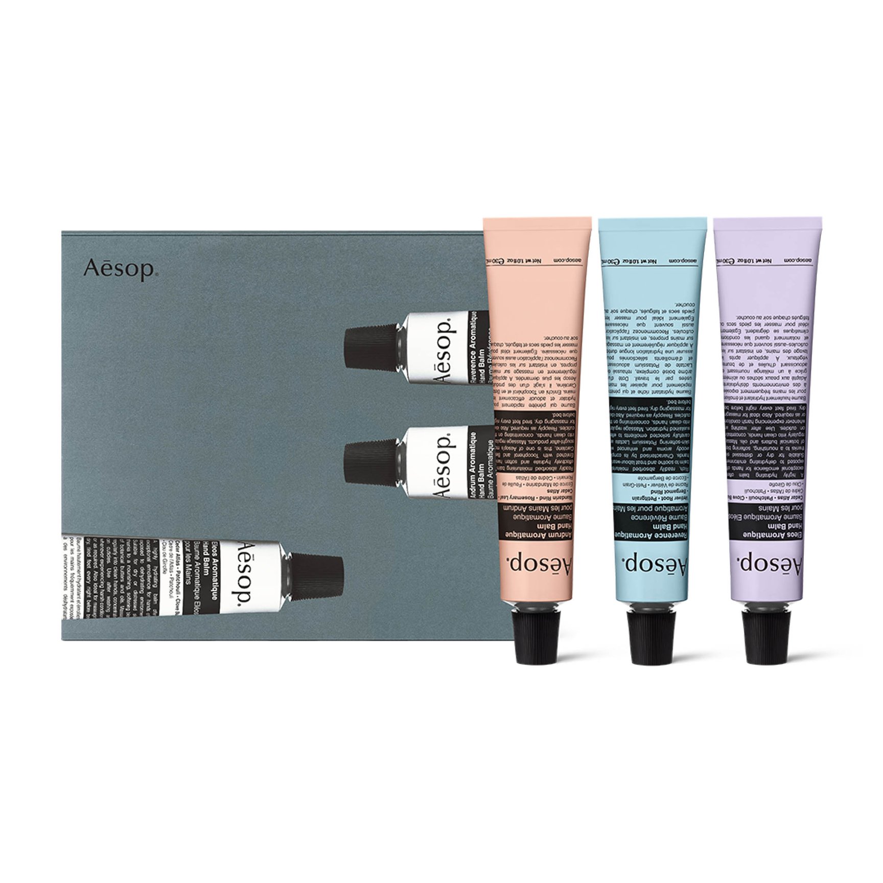 ブランドを代表する人気アイテムのハンドバーム30mLサイズがセットになってお目見え。3種の香りが揃い、その日の気分によって使い分けても、大切な人とシェアして使うのもおすすめです。