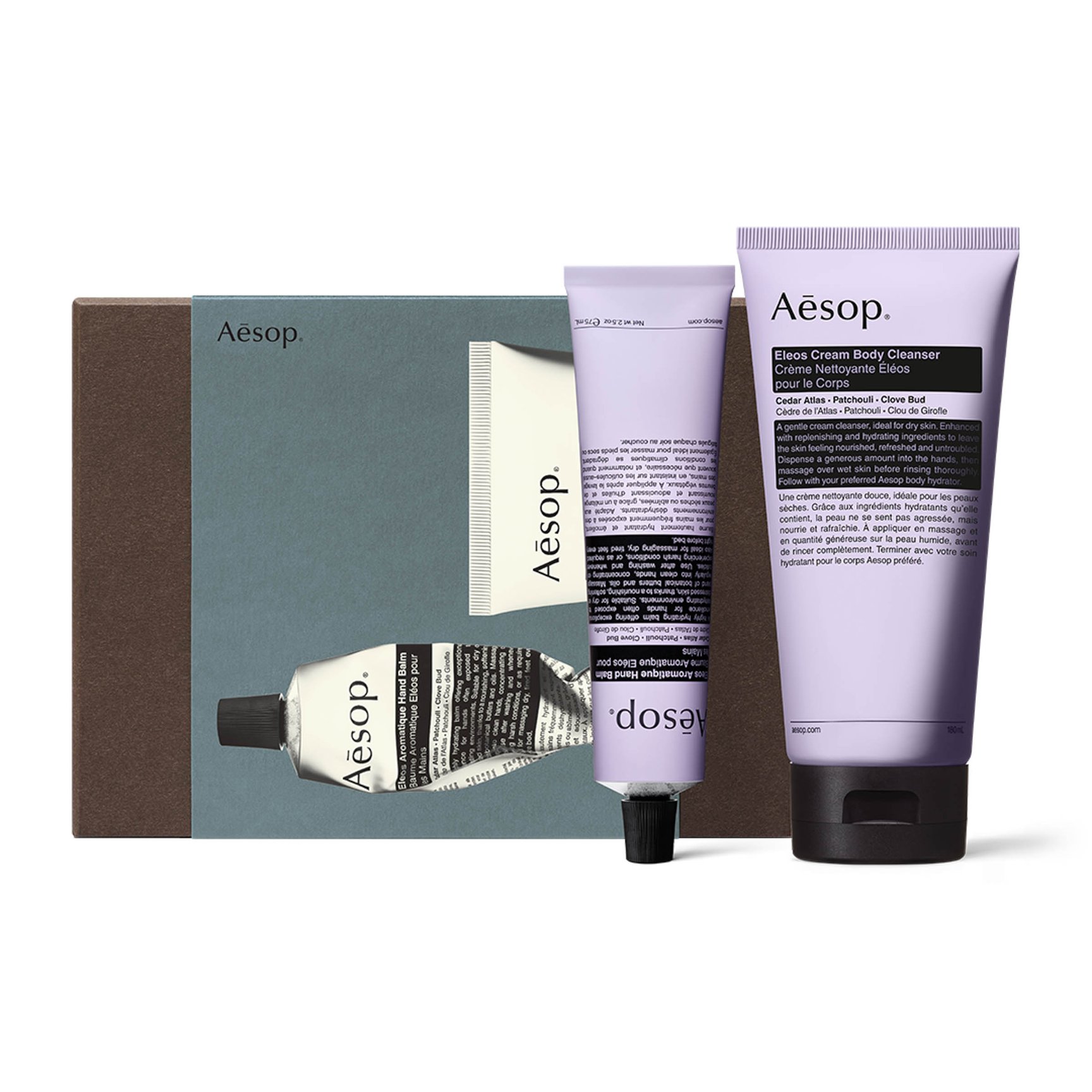 温かみのあるウッディとハーバルの香りが人気の「エレオス」。植物由来のバターとオイルを配合したハンドバームと、リッチで心安らぐテクスチャーのクリームベースのボディウォッシュで、毎日のシャワーを癒やしの時間に。
