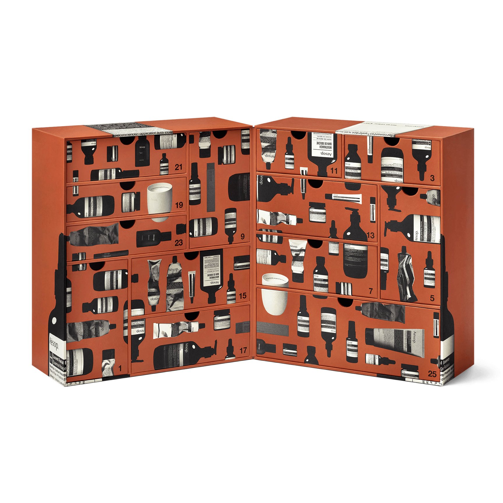 「イソップの住居」という意味を持つ「ザ イソップ アボード」という名のアドベントカレンダーが登場。奇数が書かれた13の扉の中には、ボディケア、スキンケア、フレグランスといったスターアイテムが入っています。