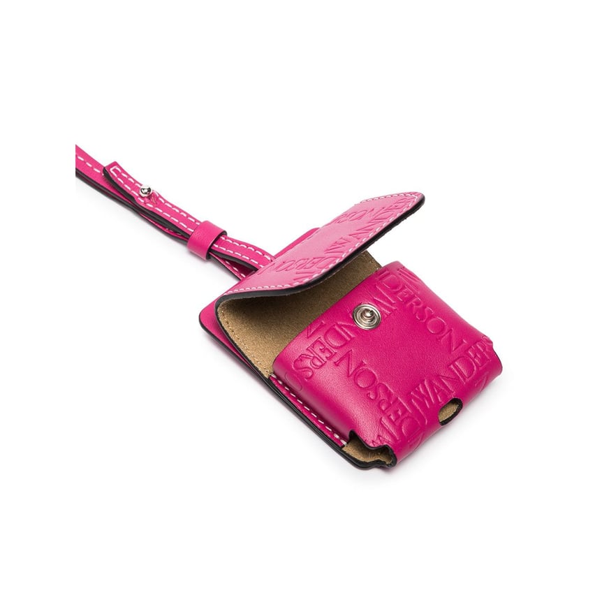 目が覚めるようなヴィヴィッドピンクカラーにホワイトのステッチが映えるAirPodsケース。ブランドネームをデボス加工でランダムに入れ、遊び心を添えたデザイン。調節可能なネックストラップを付けて首から下げればアクセントとなり、コーディネートに彩りを加えてくれます。お出かけもアクティブに過ごせそう。