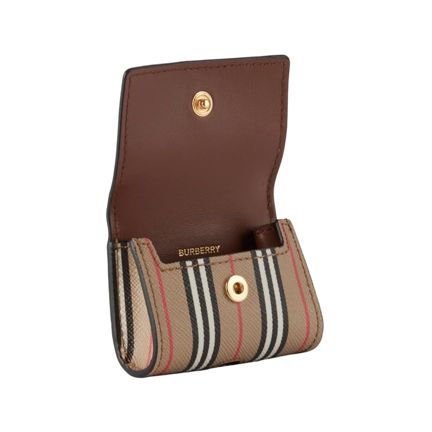 ベージュ地にブラック、ホワイト、レッドのラインを規則的に並べ、ブランドアイコン“ノバチェック”をストライプ仕様にリデザイン。表地はデイリー使いに嬉しいサフィアーノ コーティング加工をほどこしたキャンバス、裏地はシックなカラーのカーフレザーを使用。バッグチャームとして使いたいAirPods Pro用のケースです。