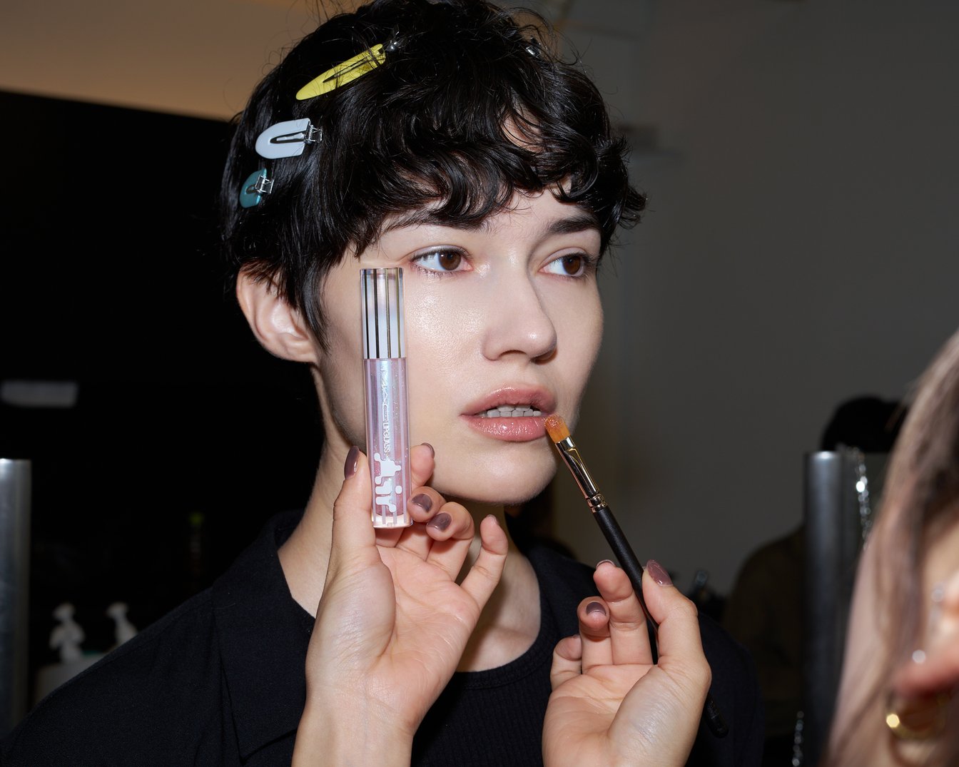 その上に「パウダー キス リキッド リップカラー」の「953 バフィスト」を重ねました。スフレのようにふわっとした質感で、指でくるくるとなじませると、表面がなめらかになり自然と肌に溶け込んでいきます。リアルさの中にも、少しアップデートされた今っぽい質感が表現できます。また今回はモデル一人ひとりが異なる個性を持っていたので、マットに仕上げたモデルと、さらにツヤを足したモデルを揃え、それぞれの魅力を引き立てることを意識しました。