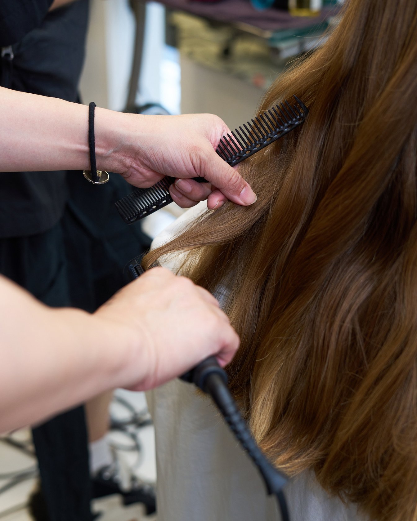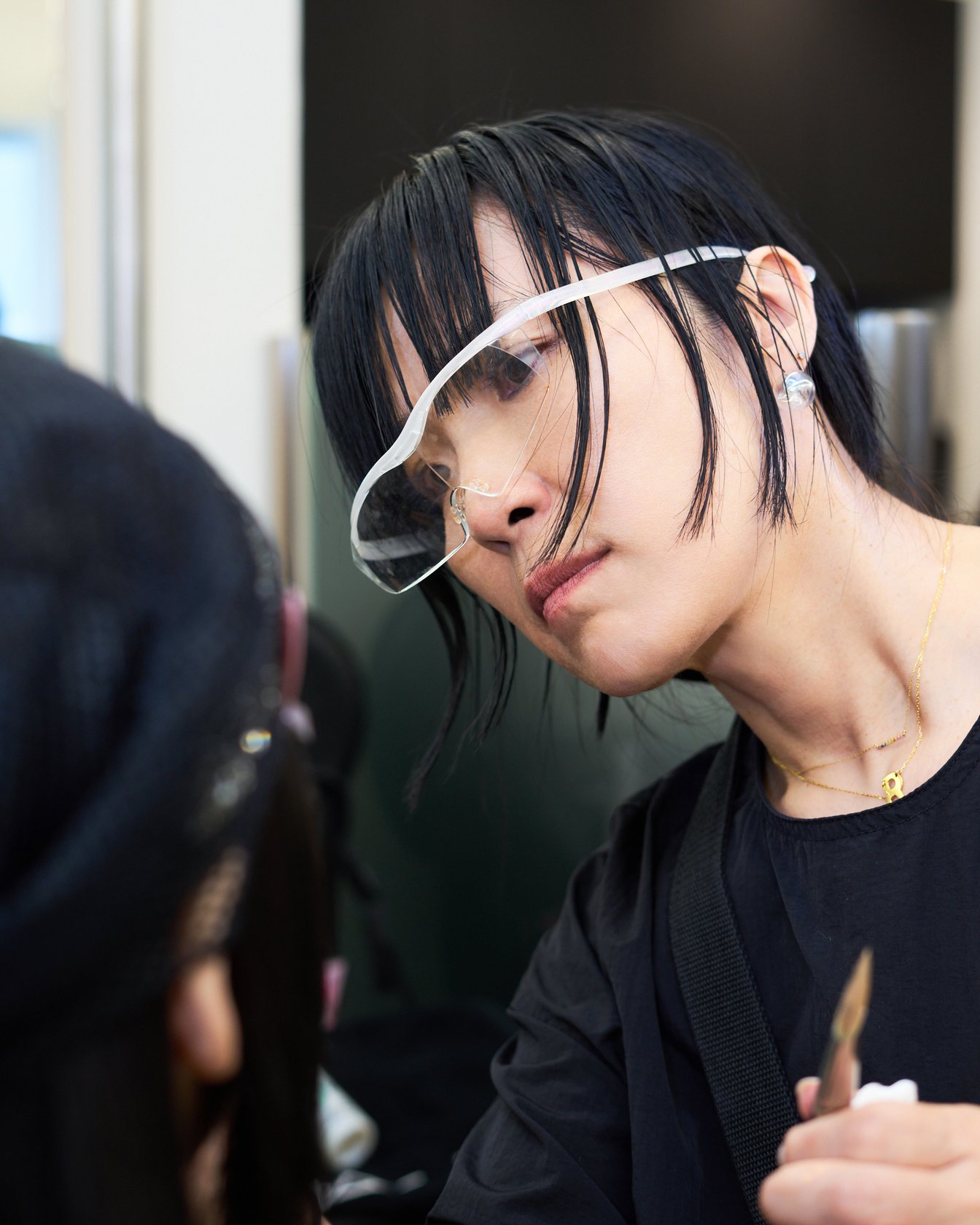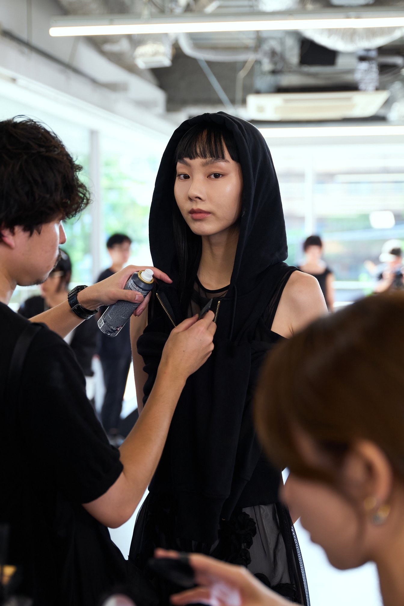スタイルの提案は僕から行いますが、どのモデルにどのスタイルを、というのは青木さんが指定しています。 基本的なスタイルは事前に決定していて、当日の朝に「この子どうしようか迷っている」といった相談や、前髪の細かい角度の調整など、青木さんと一緒にディテールを詰めています。